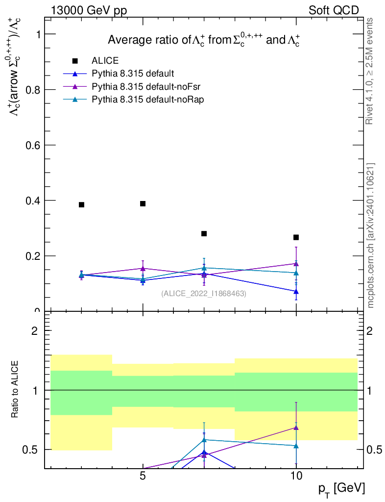 Soft QCD (inelastic) : Identified Particles : Ratios : Λc+ from Σc0,+,++/Λc+ vs pT