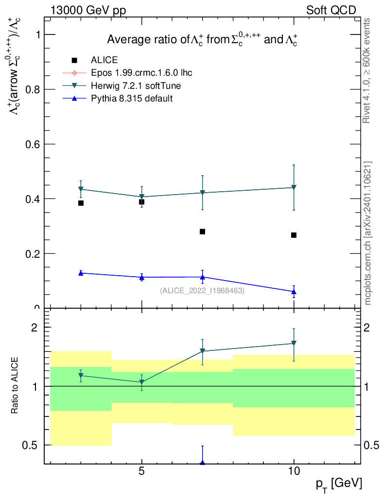 Soft QCD (inelastic) : Identified Particles : Ratios : Λc+ from Σc0,+,++/Λc+ vs pT