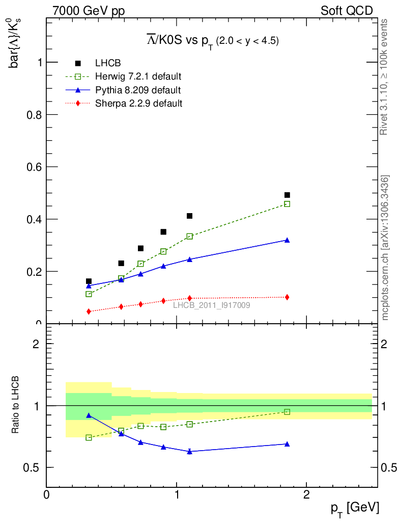 Soft QCD (inelastic) : Identified Particles : Ratios : Λbar/K0S vs pT