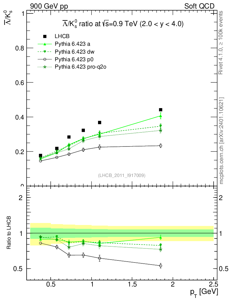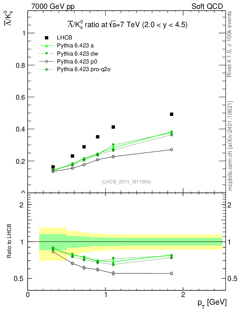 Soft QCD (inelastic) : Identified Particles : Ratios : Λbar/K0S vs pT