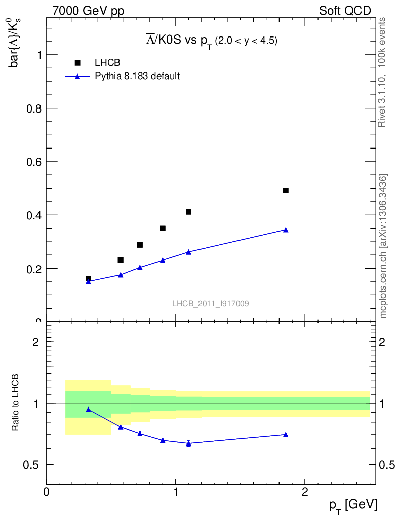 Soft QCD (inelastic) : Identified Particles : Ratios : Λbar/K0S vs pT