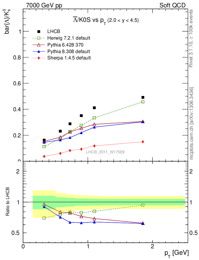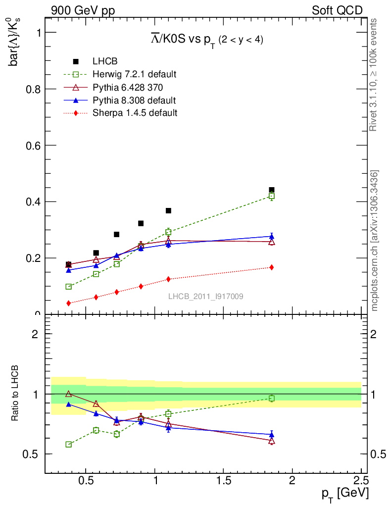 Soft QCD (inelastic) : Identified Particles : Ratios : Λbar/K0S vs pT