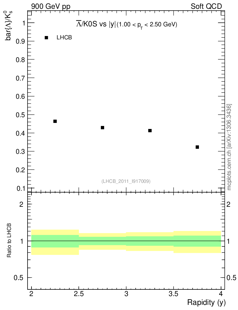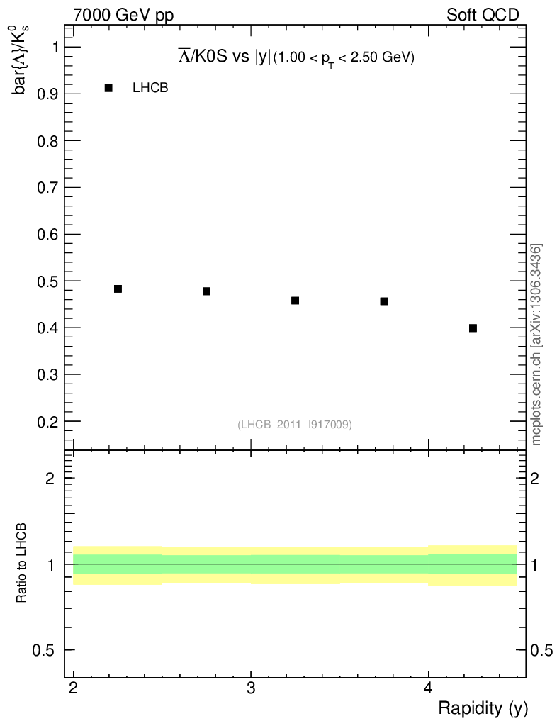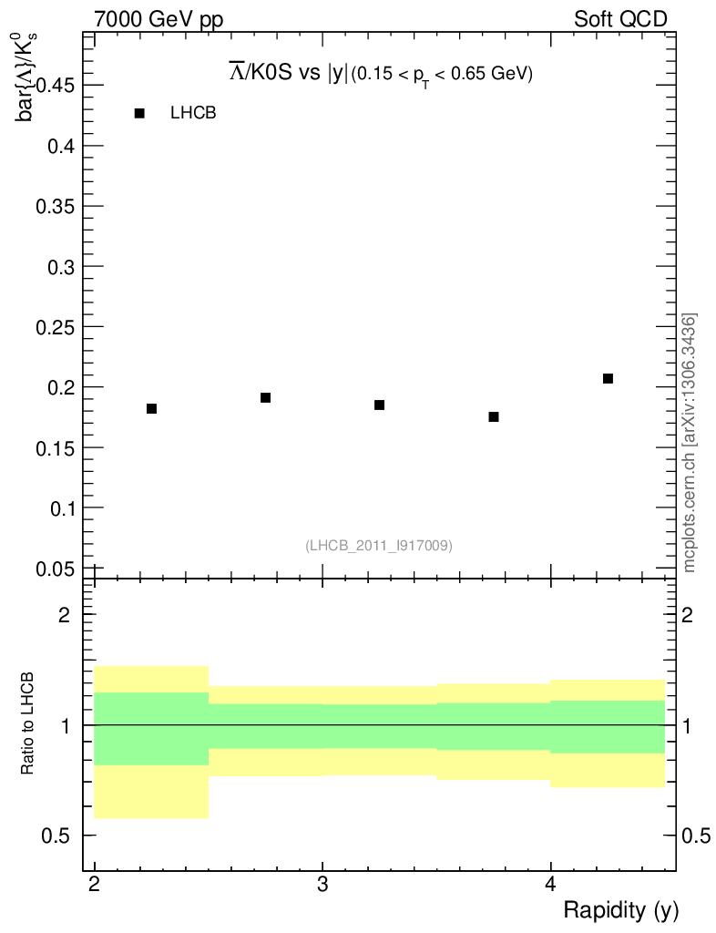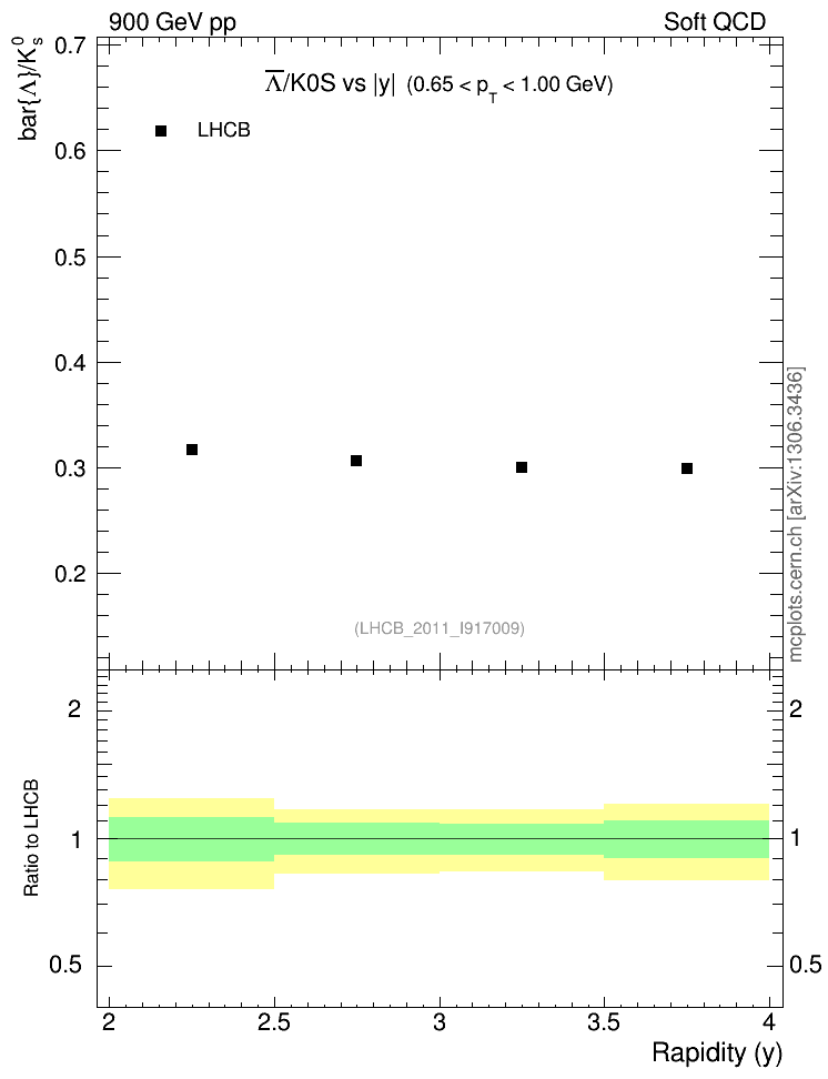 Soft QCD (inelastic) : Identified Particles : Ratios : Λbar/K0S vs |y|