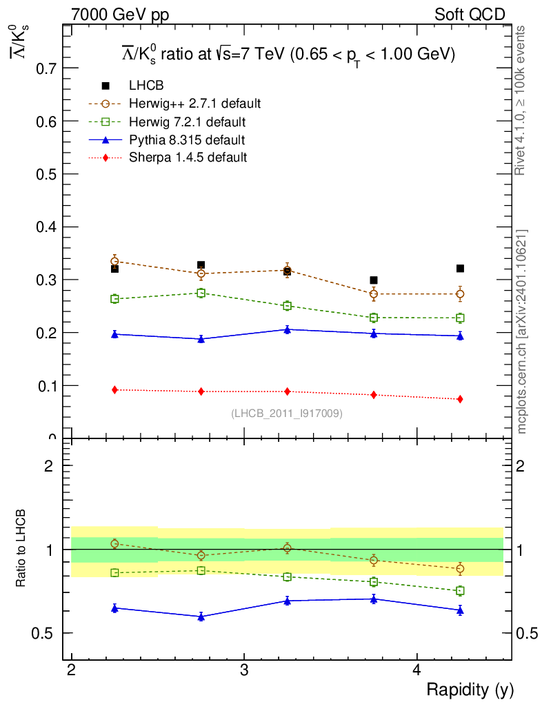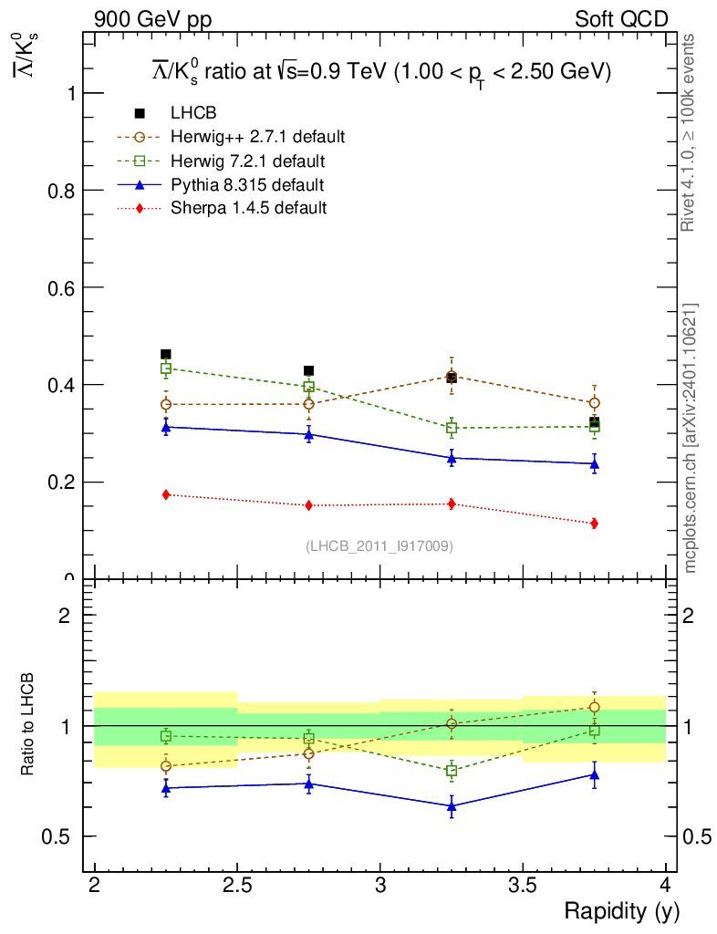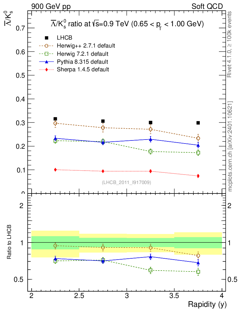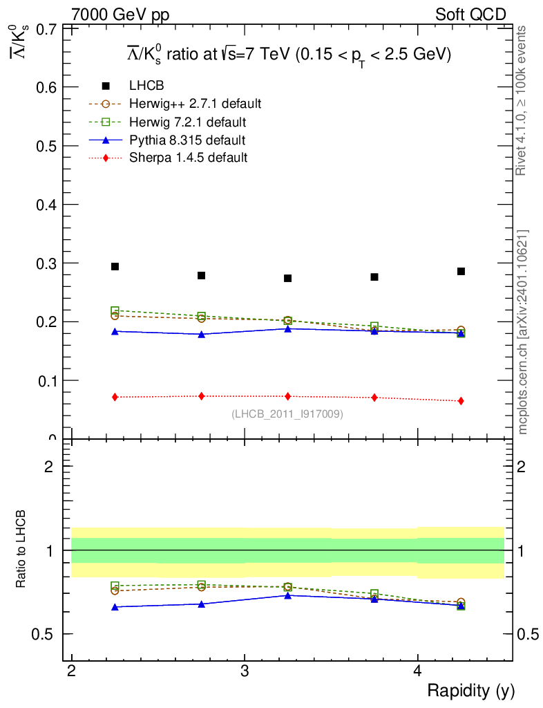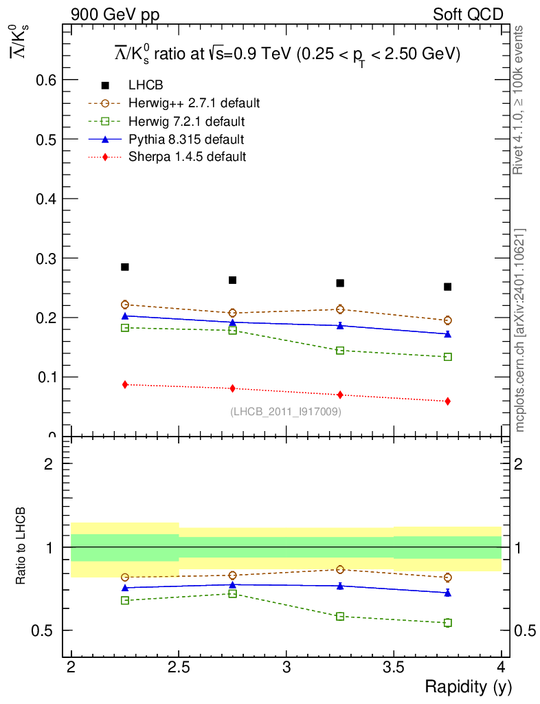Soft QCD (inelastic) : Identified Particles : Ratios : Λbar/K0S vs |y|