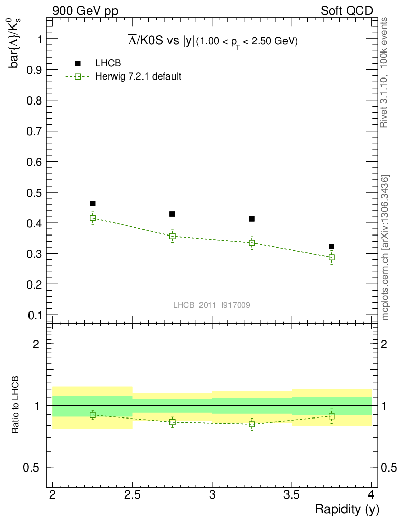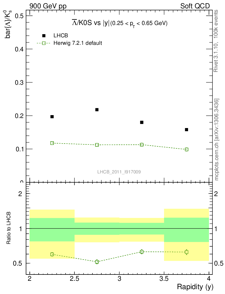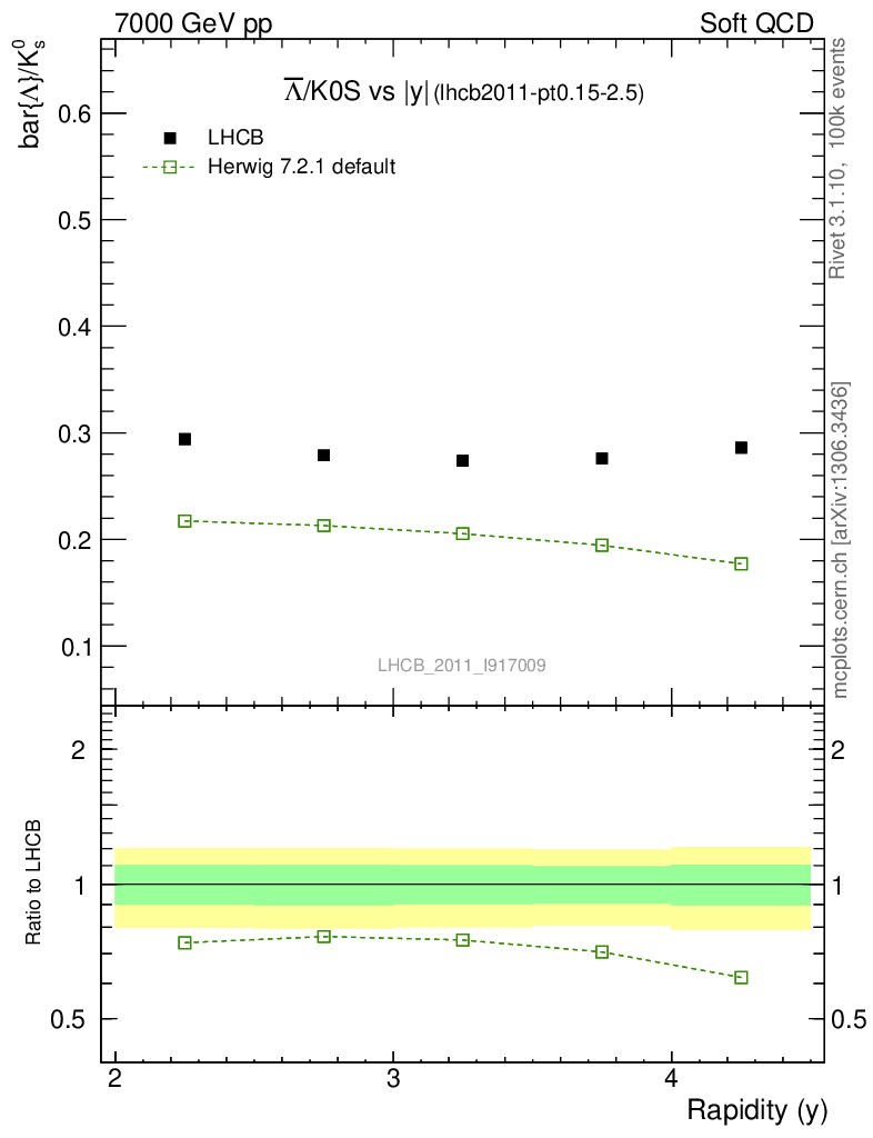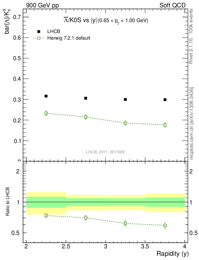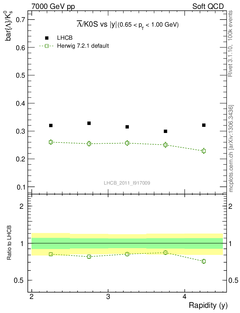 Soft QCD (inelastic) : Identified Particles : Ratios : Λbar/K0S vs |y|