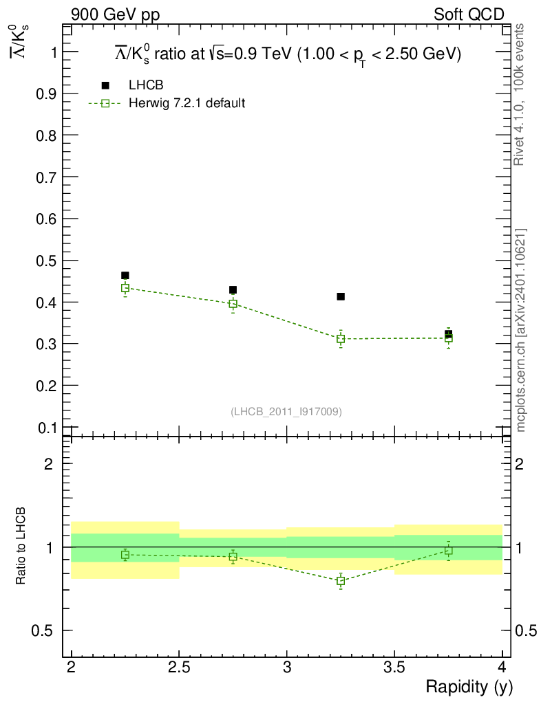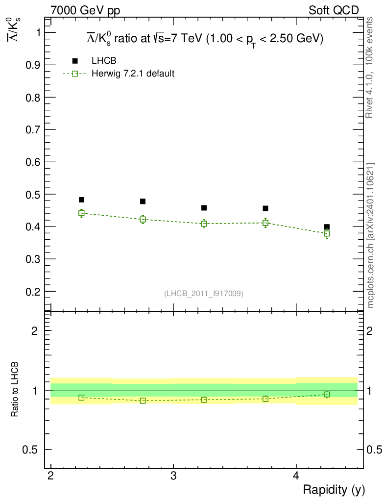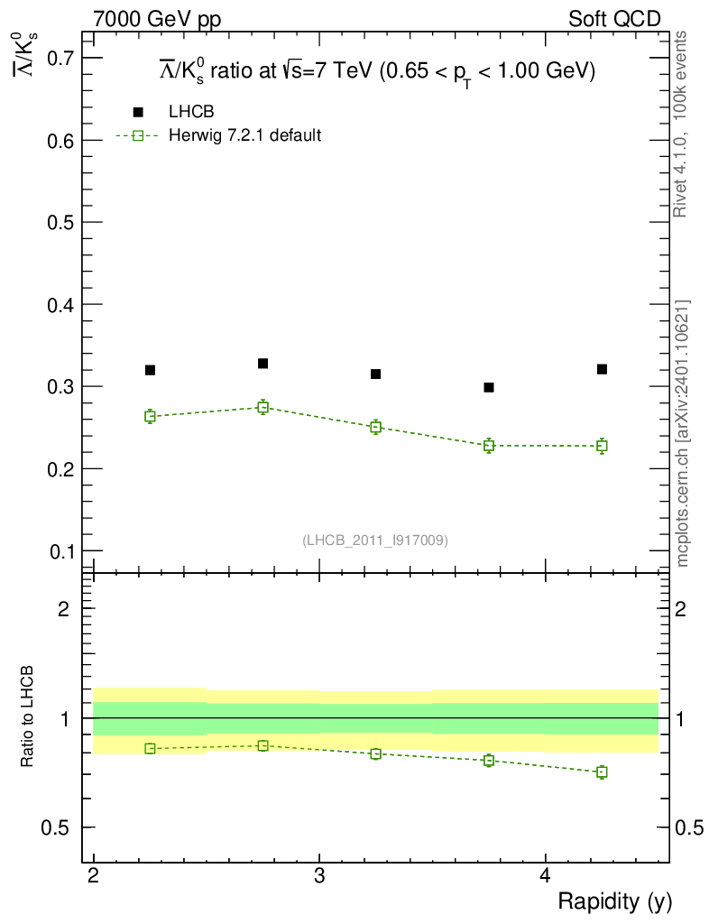 Soft QCD (inelastic) : Identified Particles : Ratios : Λbar/K0S vs |y|