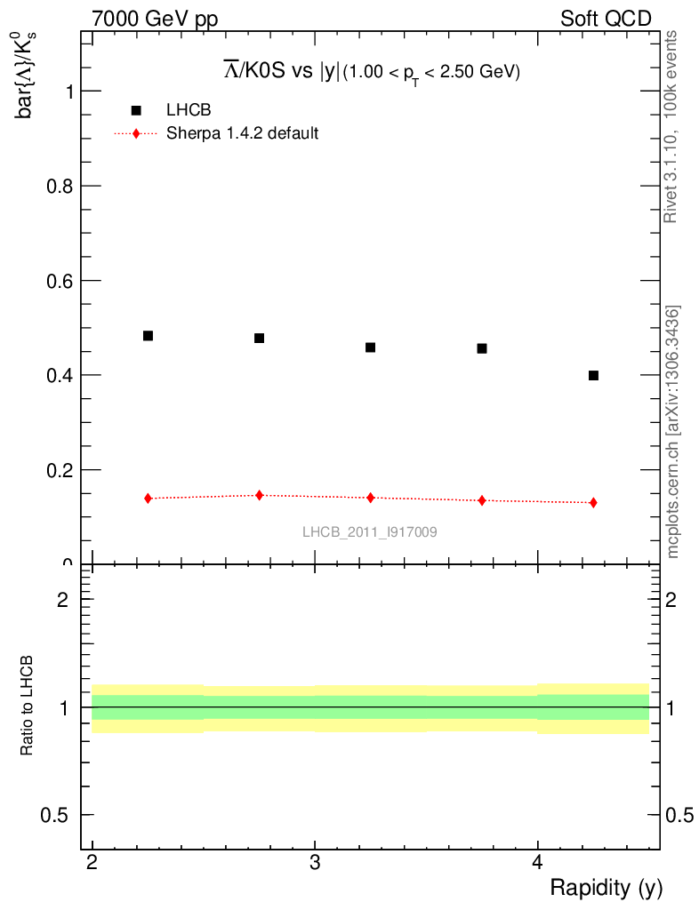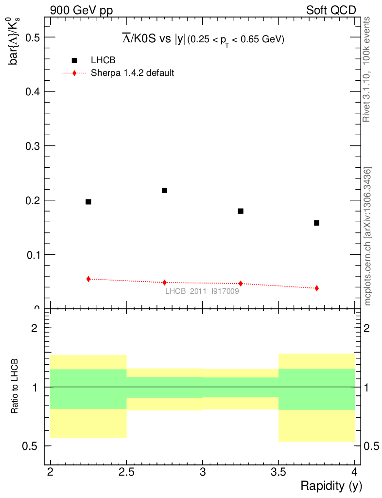 Soft QCD (inelastic) : Identified Particles : Ratios : Λbar/K0S vs |y|