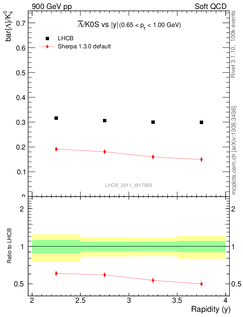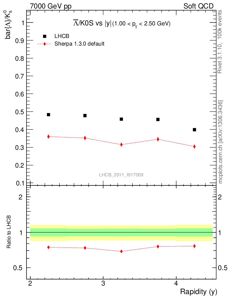Soft QCD (inelastic) : Identified Particles : Ratios : Λbar/K0S vs |y|