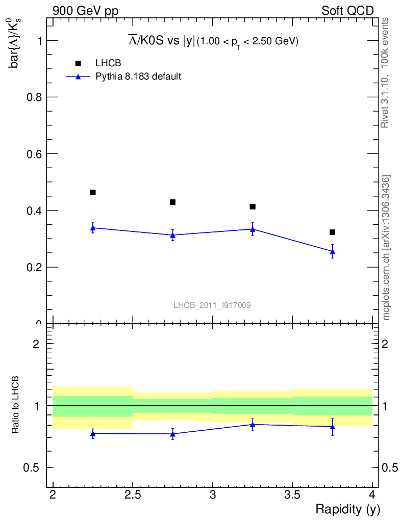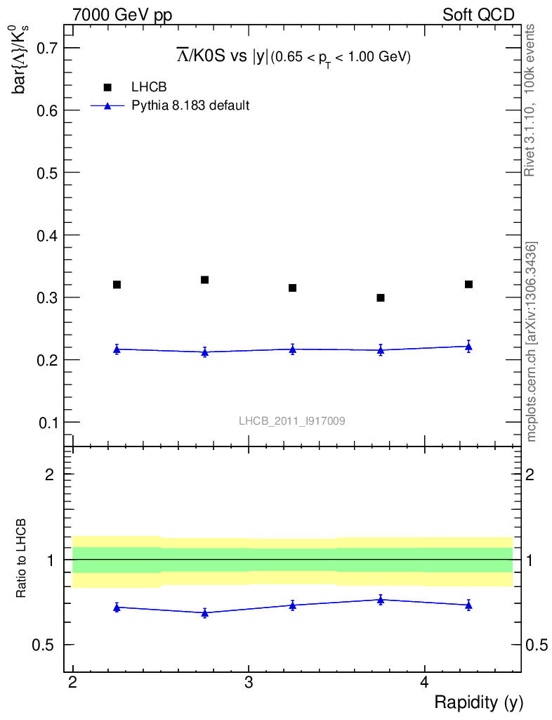 Soft QCD (inelastic) : Identified Particles : Ratios : Λbar/K0S vs |y|