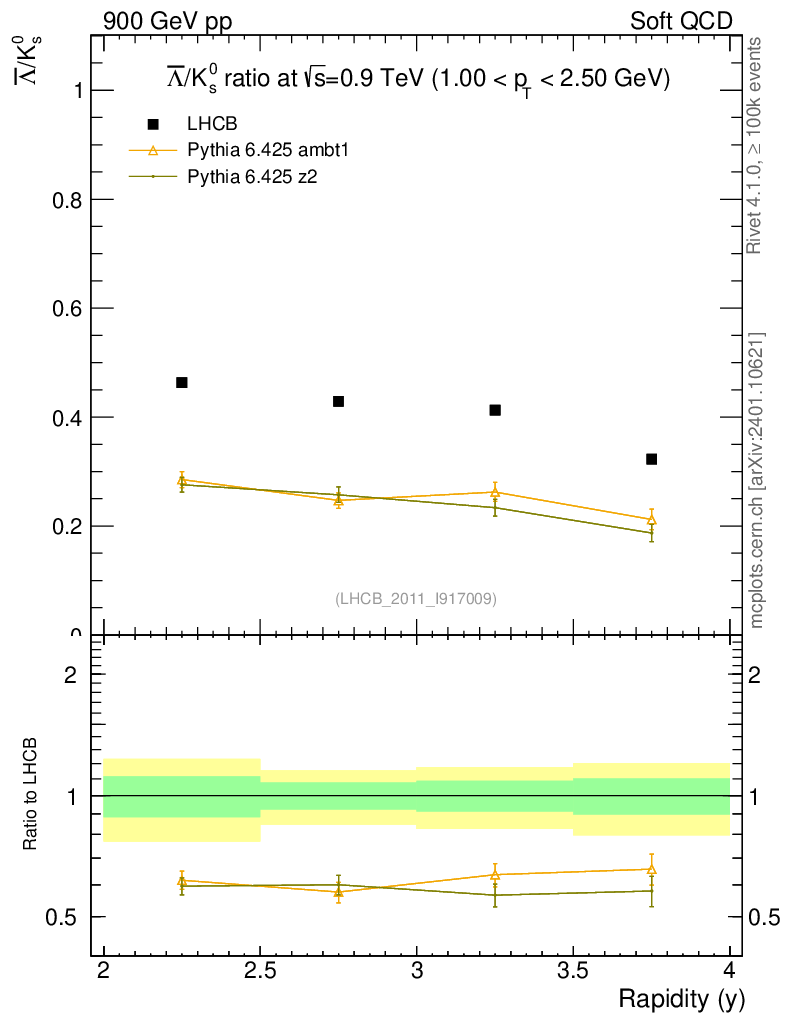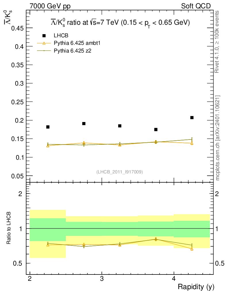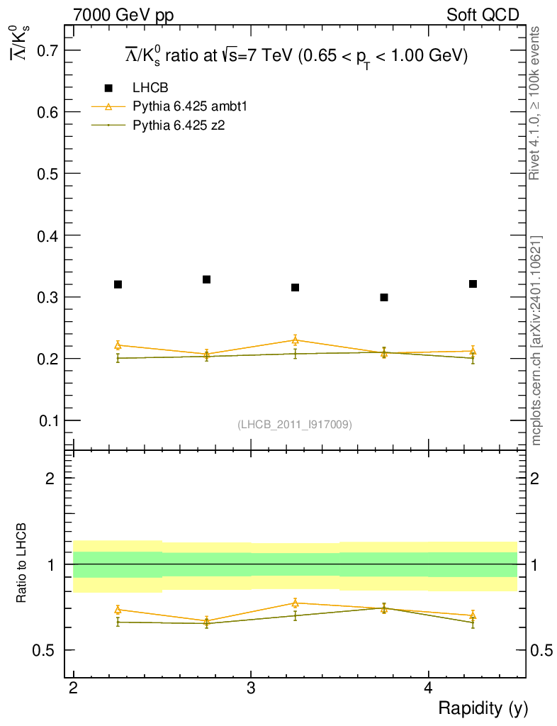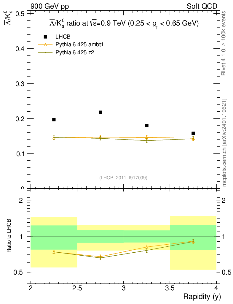 Soft QCD (inelastic) : Identified Particles : Ratios : Λbar/K0S vs |y|