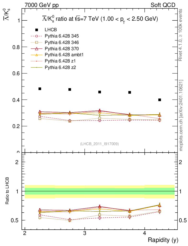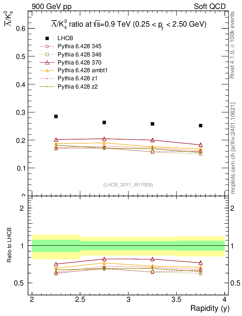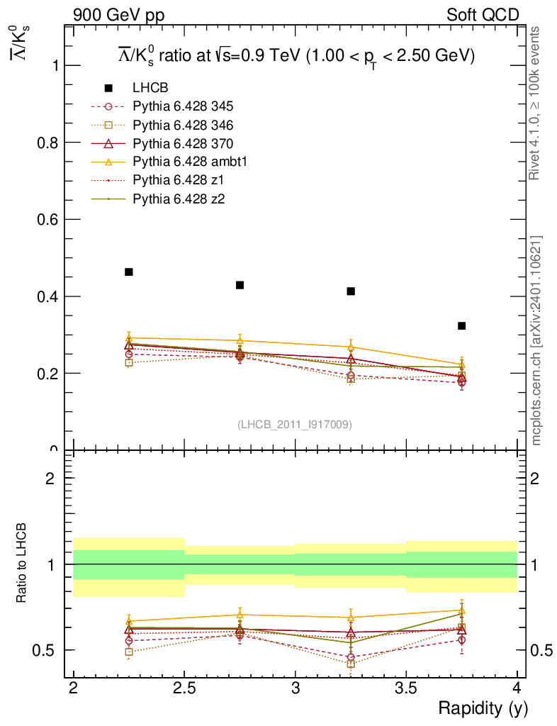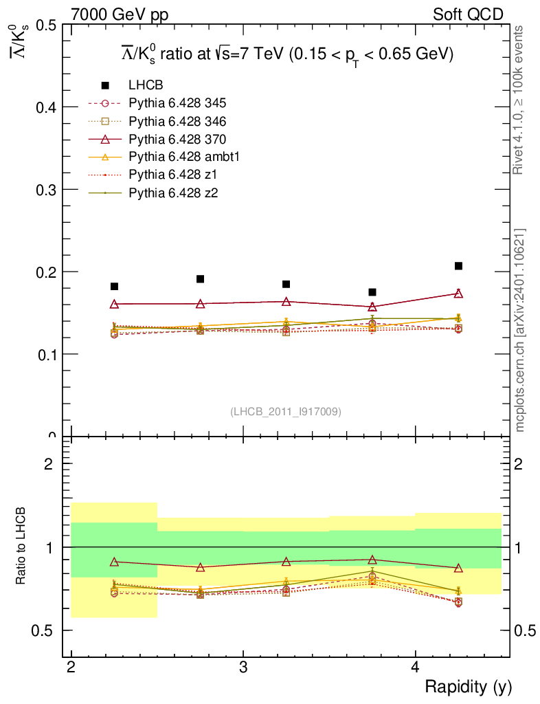 Soft QCD (inelastic) : Identified Particles : Ratios : Λbar/K0S vs |y|