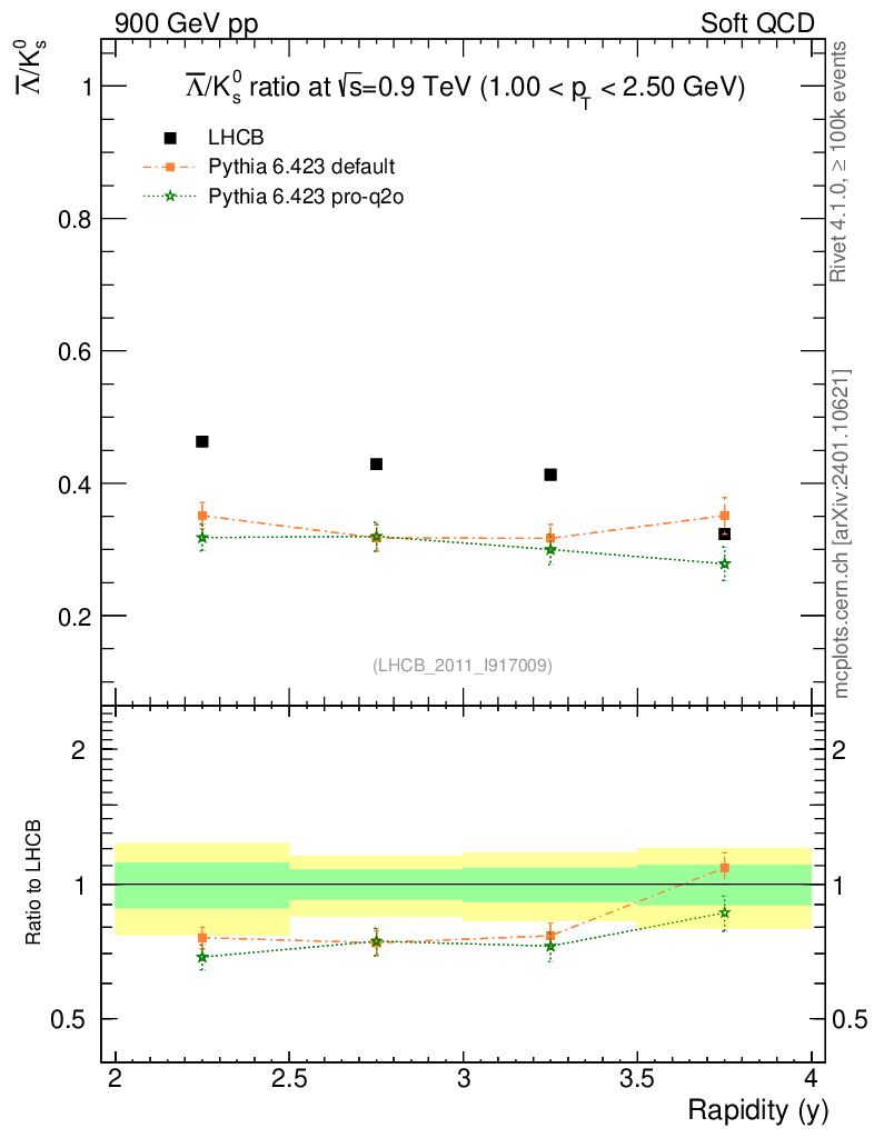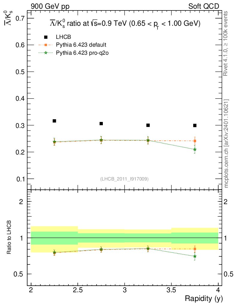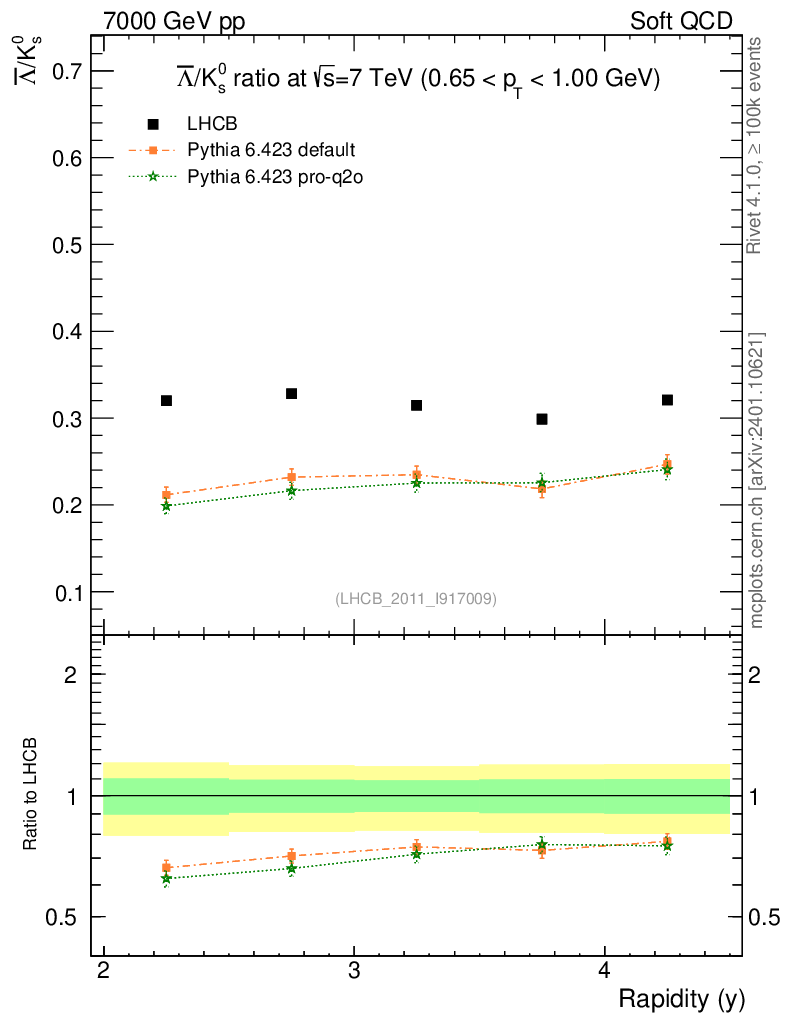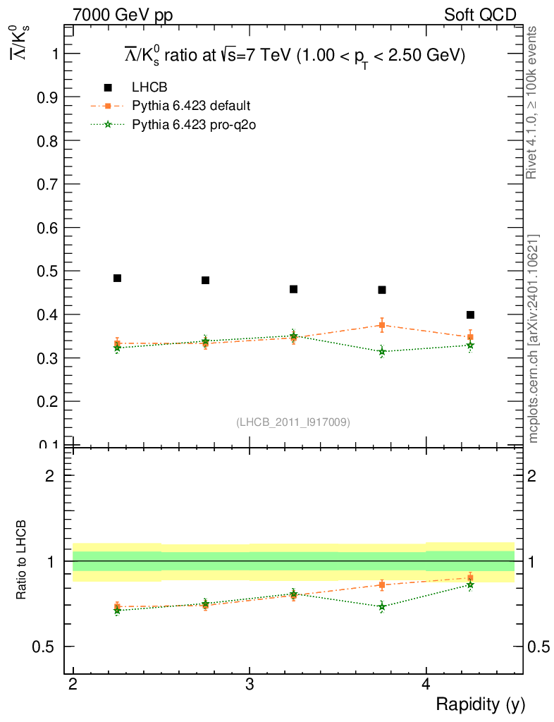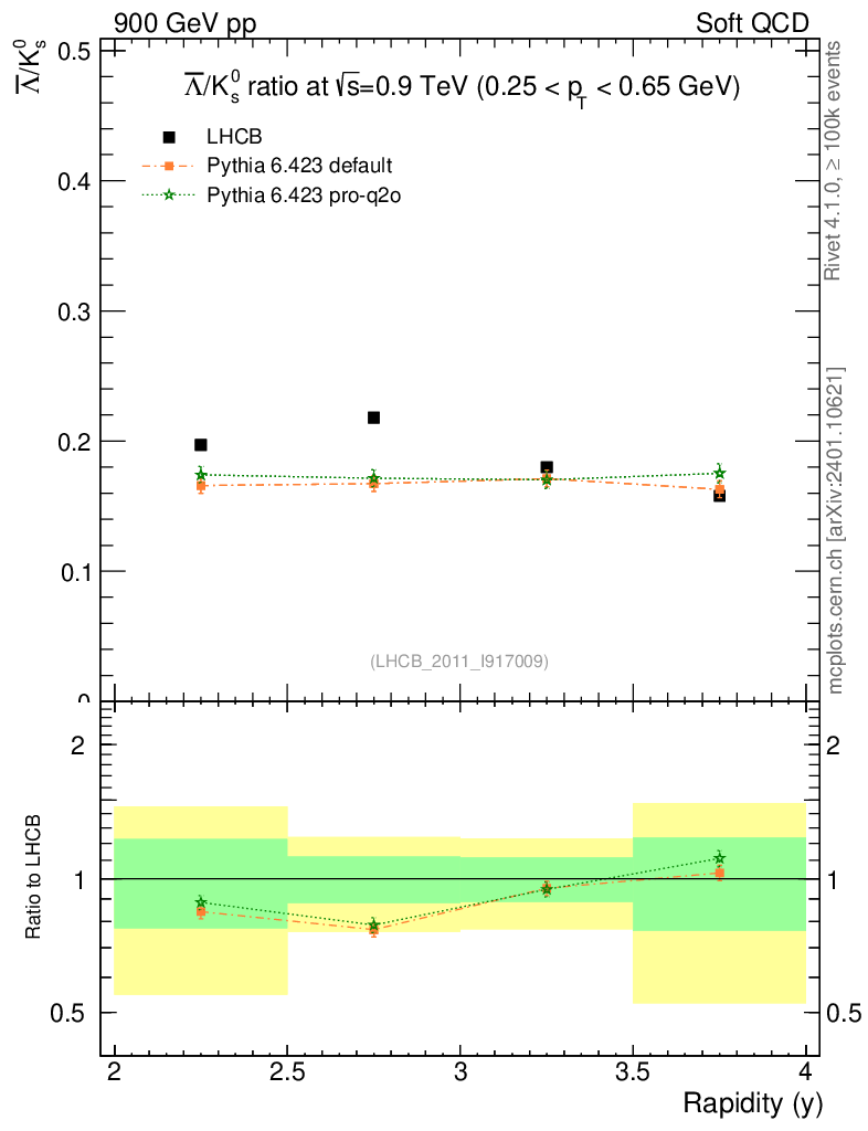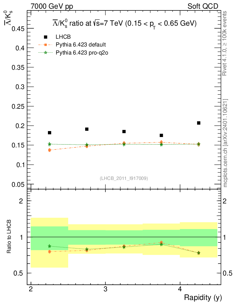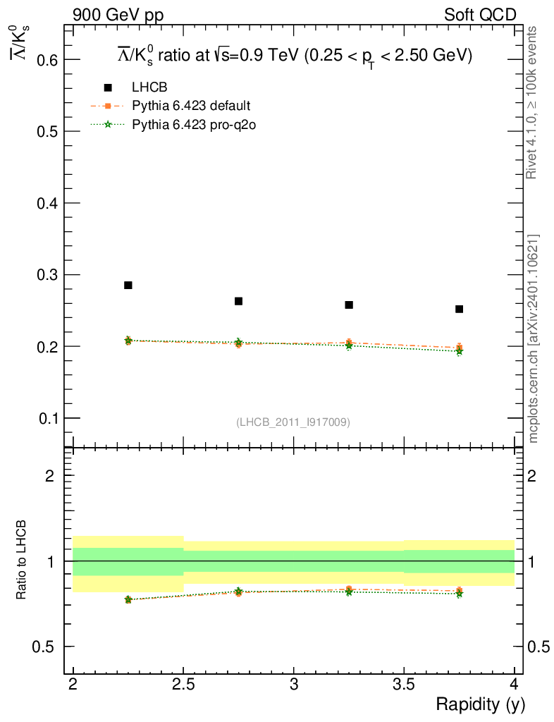 Soft QCD (inelastic) : Identified Particles : Ratios : Λbar/K0S vs |y|