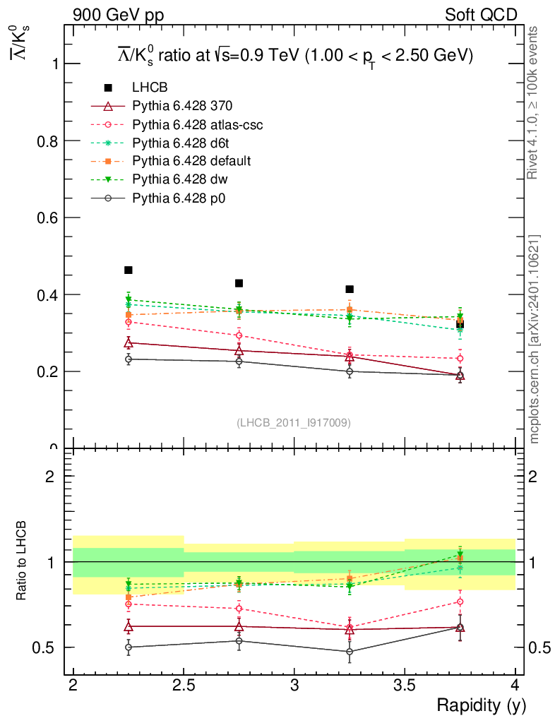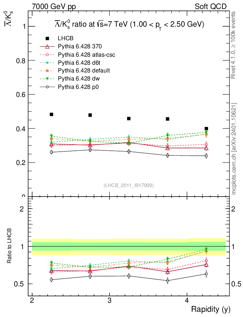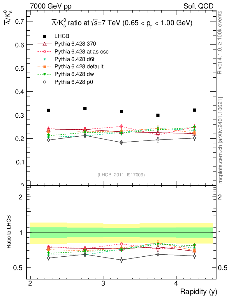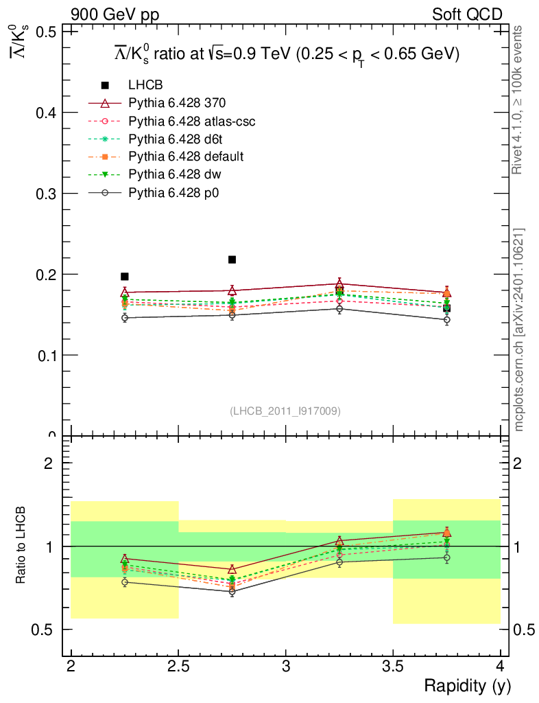 Soft QCD (inelastic) : Identified Particles : Ratios : Λbar/K0S vs |y|