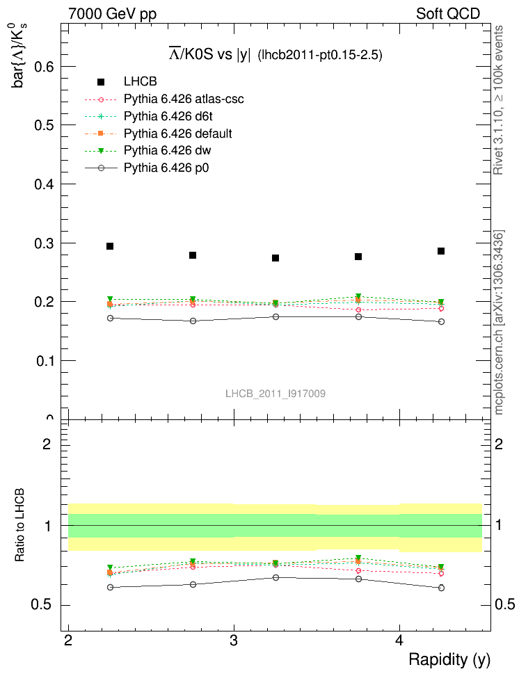 Soft QCD (inelastic) : Identified Particles : Ratios : Λbar/K0S vs |y|