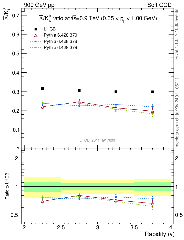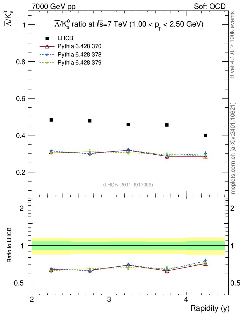 Soft QCD (inelastic) : Identified Particles : Ratios : Λbar/K0S vs |y|