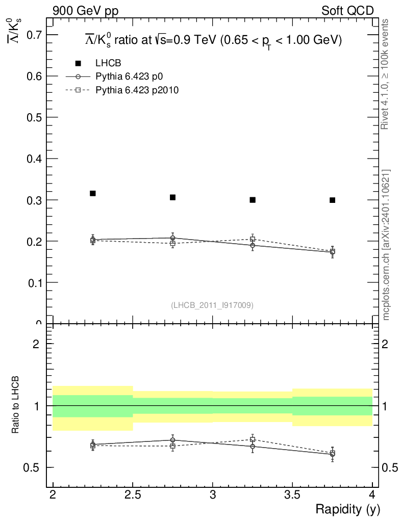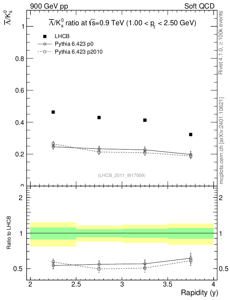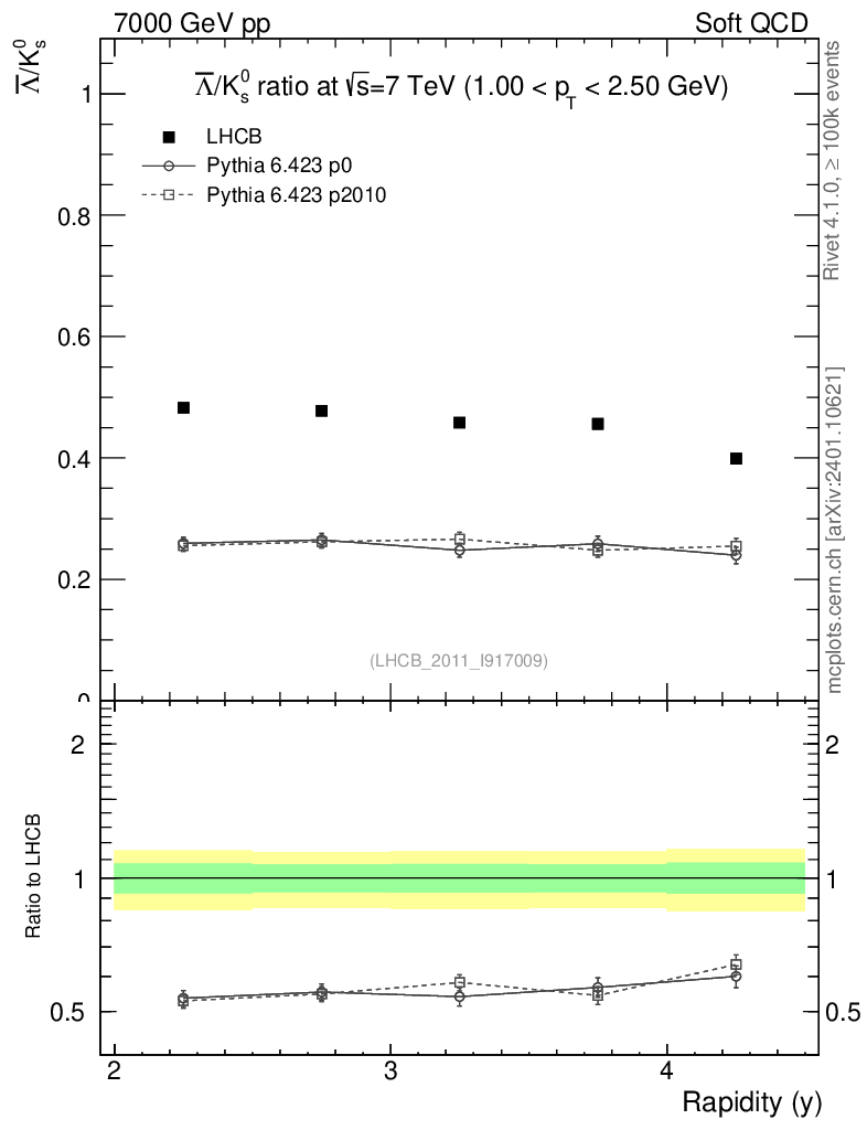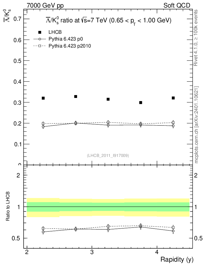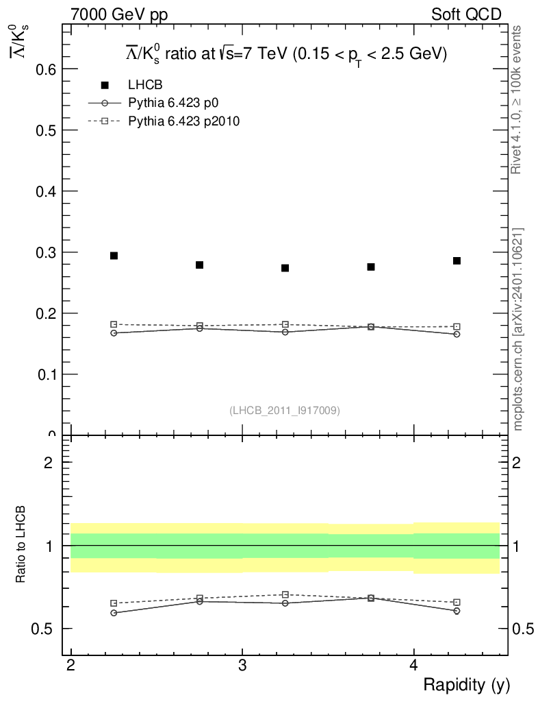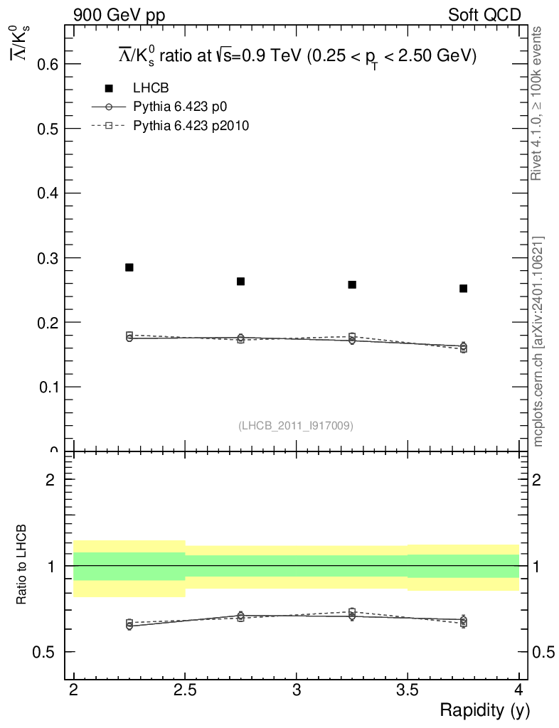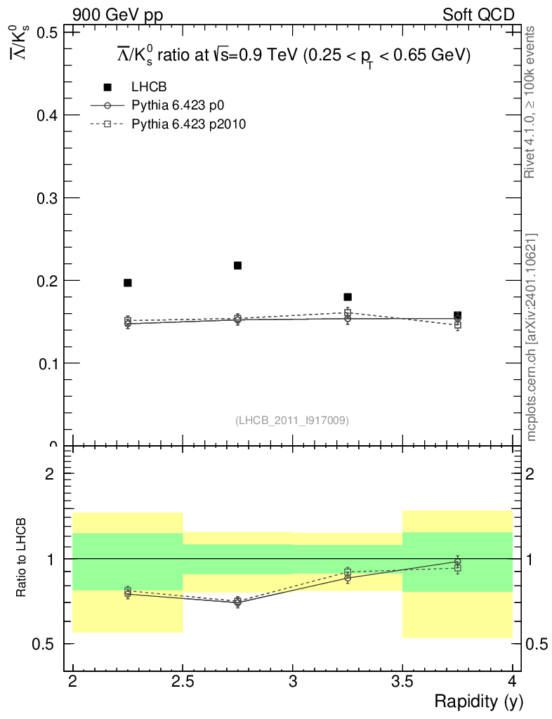 Soft QCD (inelastic) : Identified Particles : Ratios : Λbar/K0S vs |y|