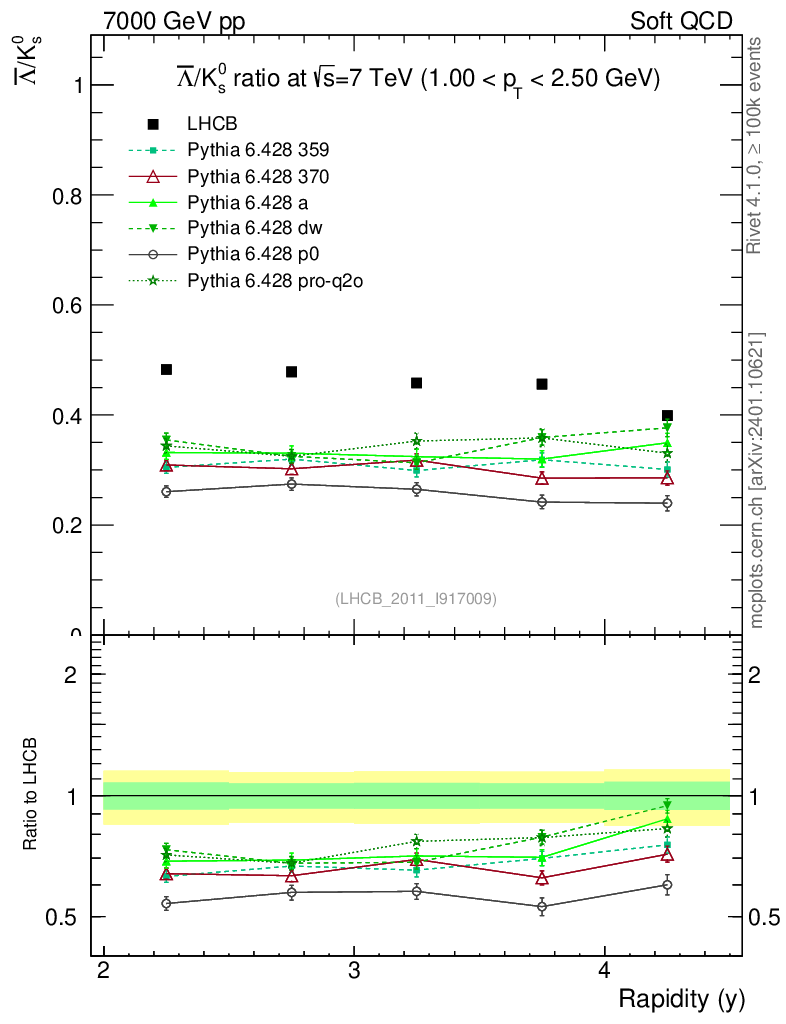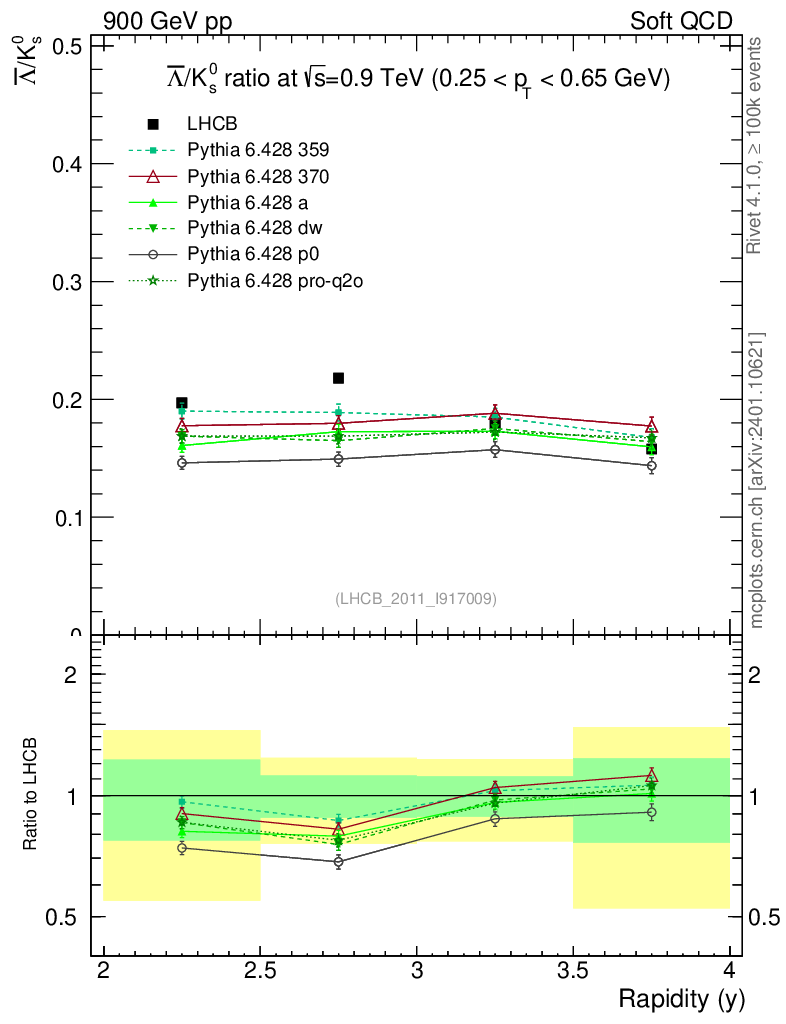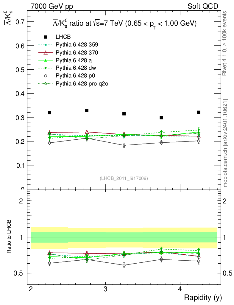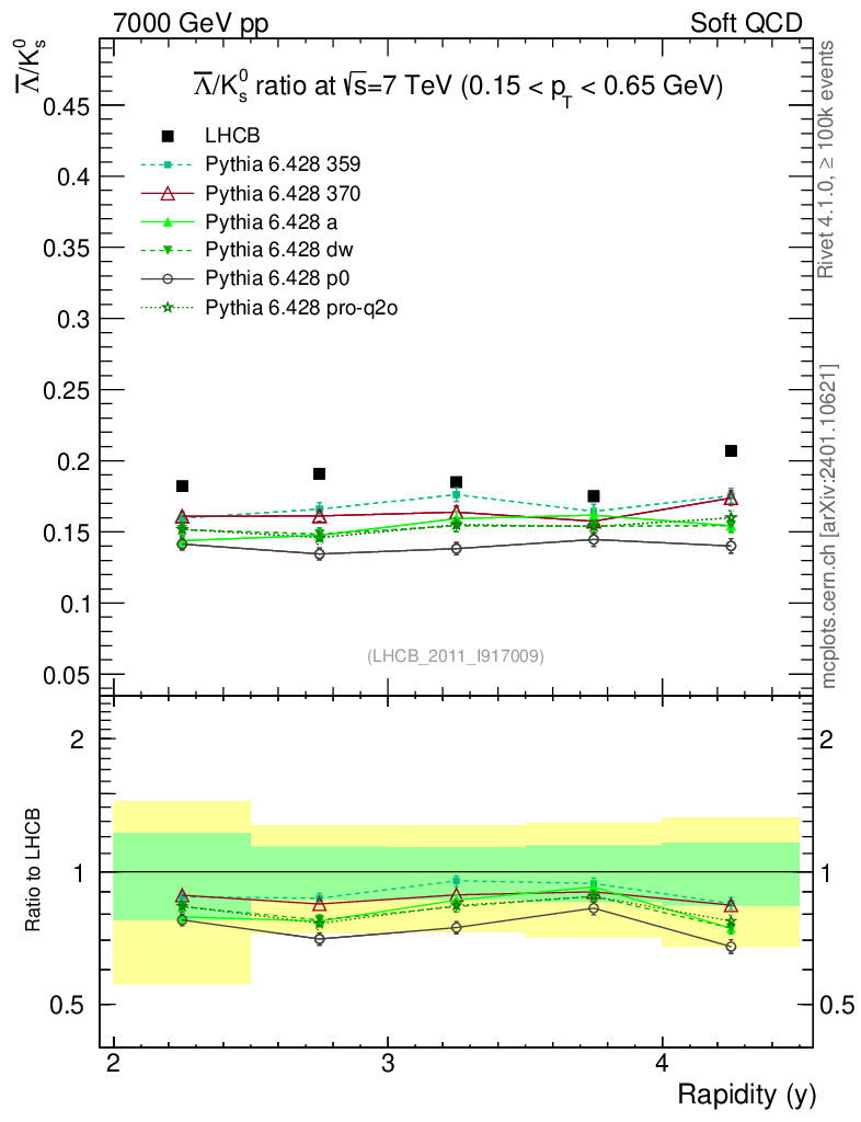 Soft QCD (inelastic) : Identified Particles : Ratios : Λbar/K0S vs |y|
