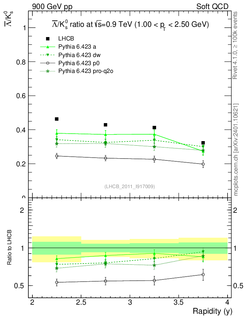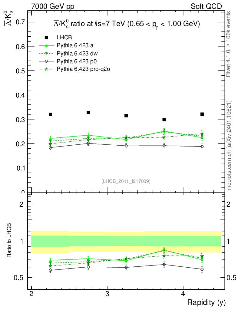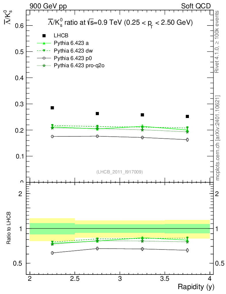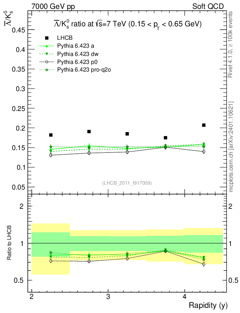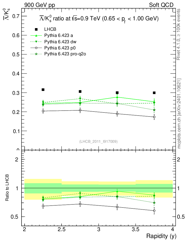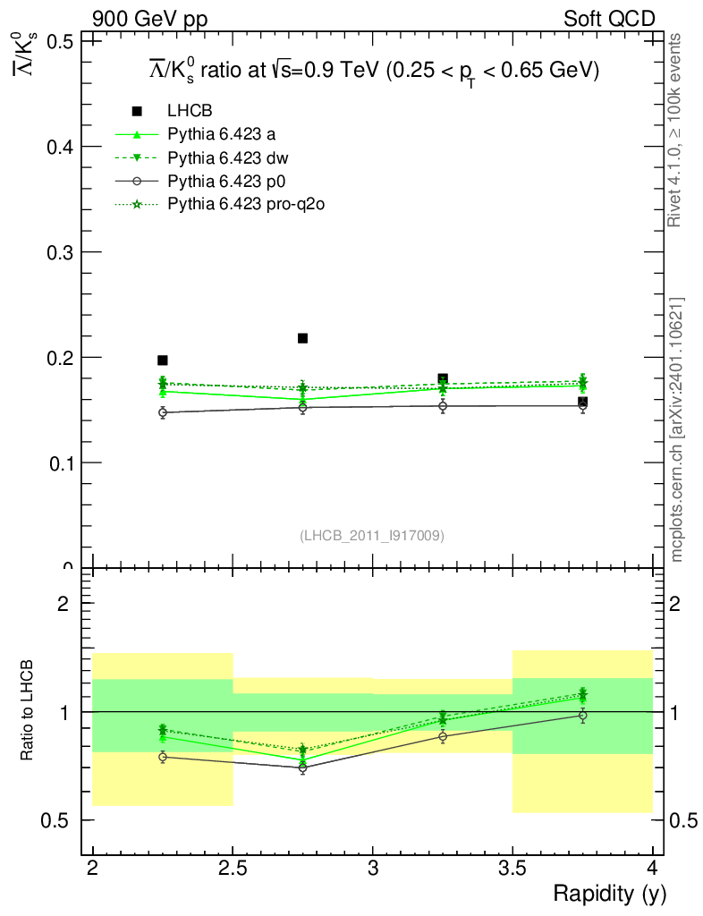 Soft QCD (inelastic) : Identified Particles : Ratios : Λbar/K0S vs |y|