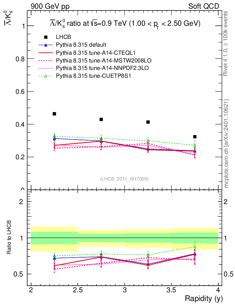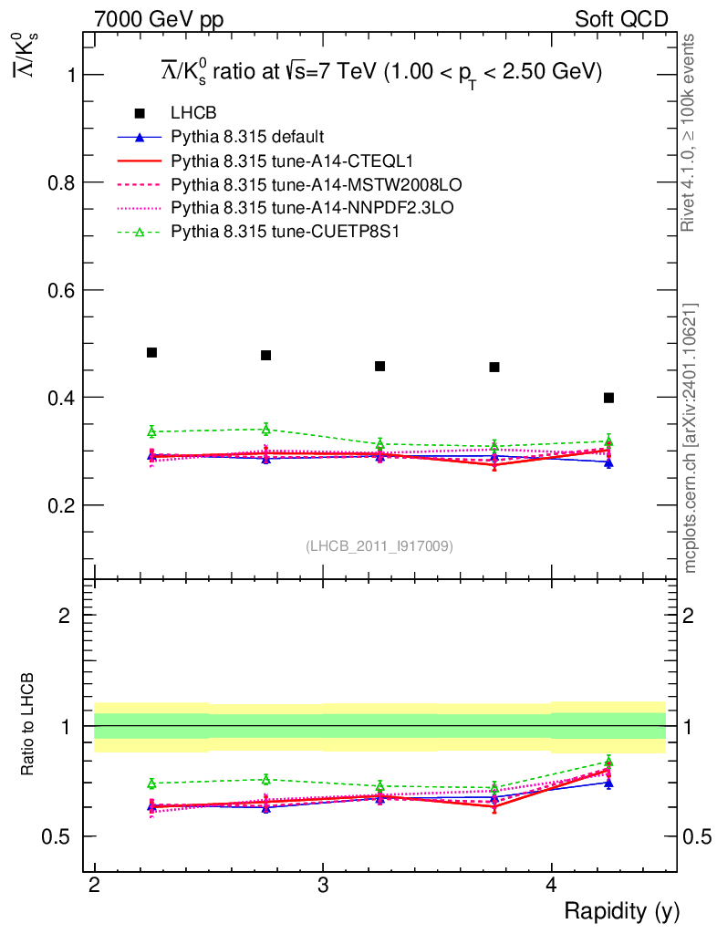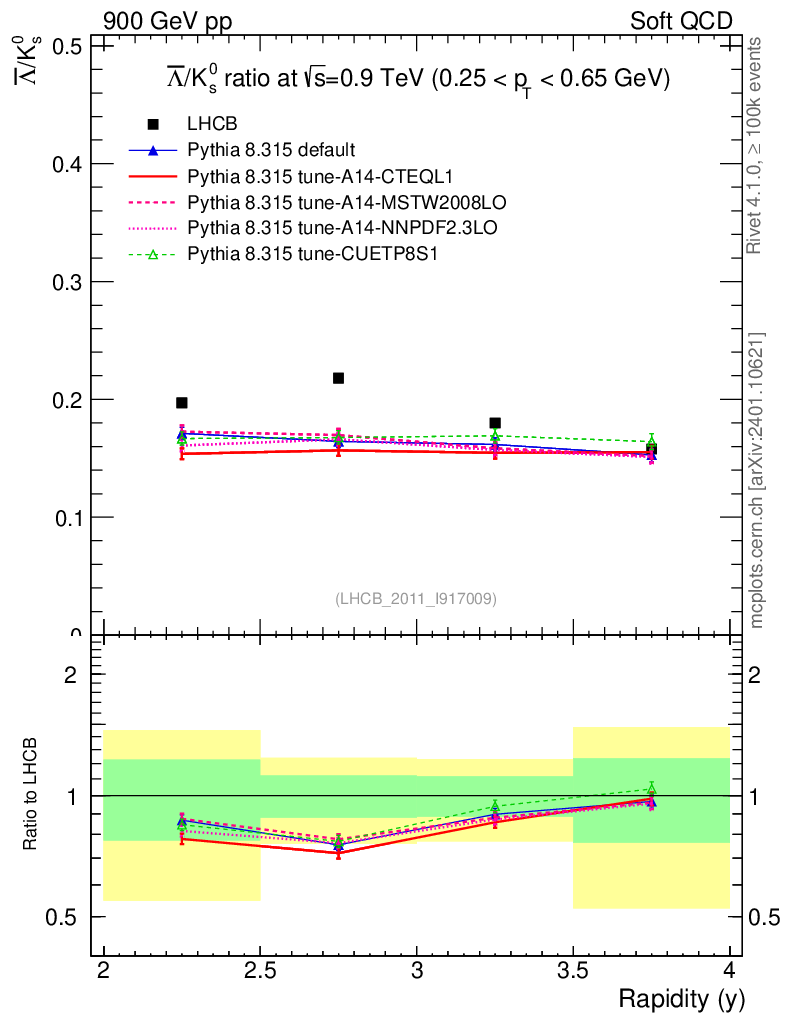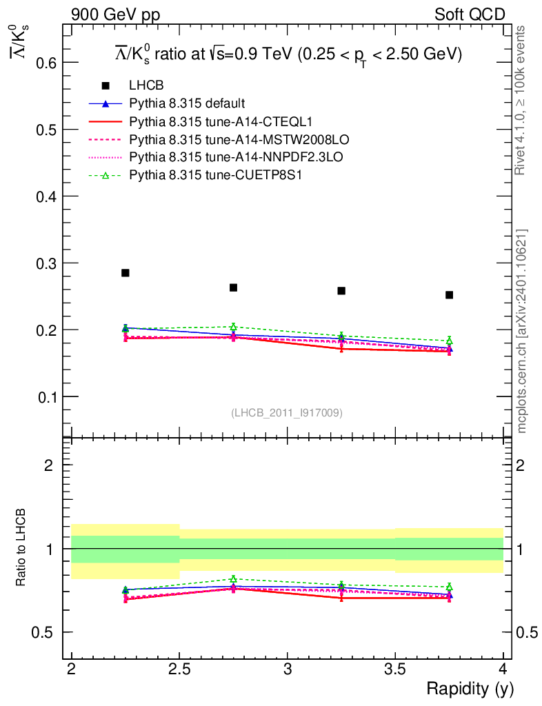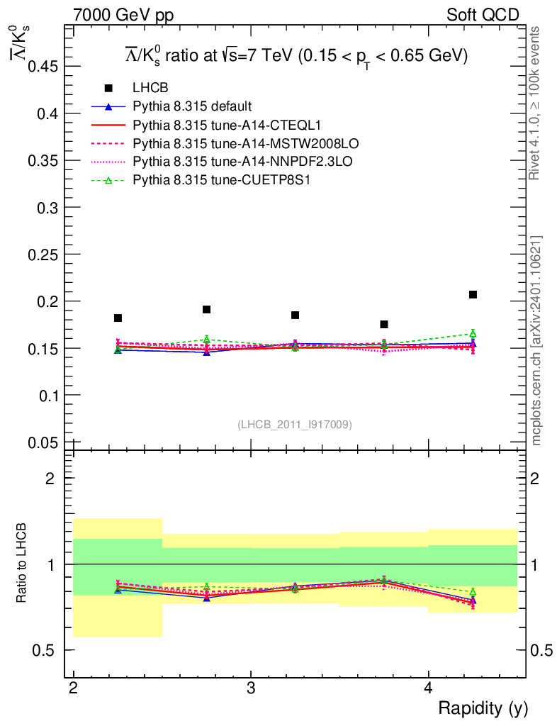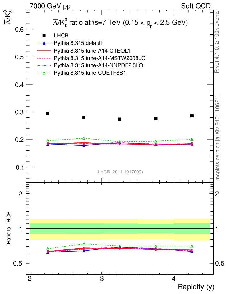 Soft QCD (inelastic) : Identified Particles : Ratios : Λbar/K0S vs |y|