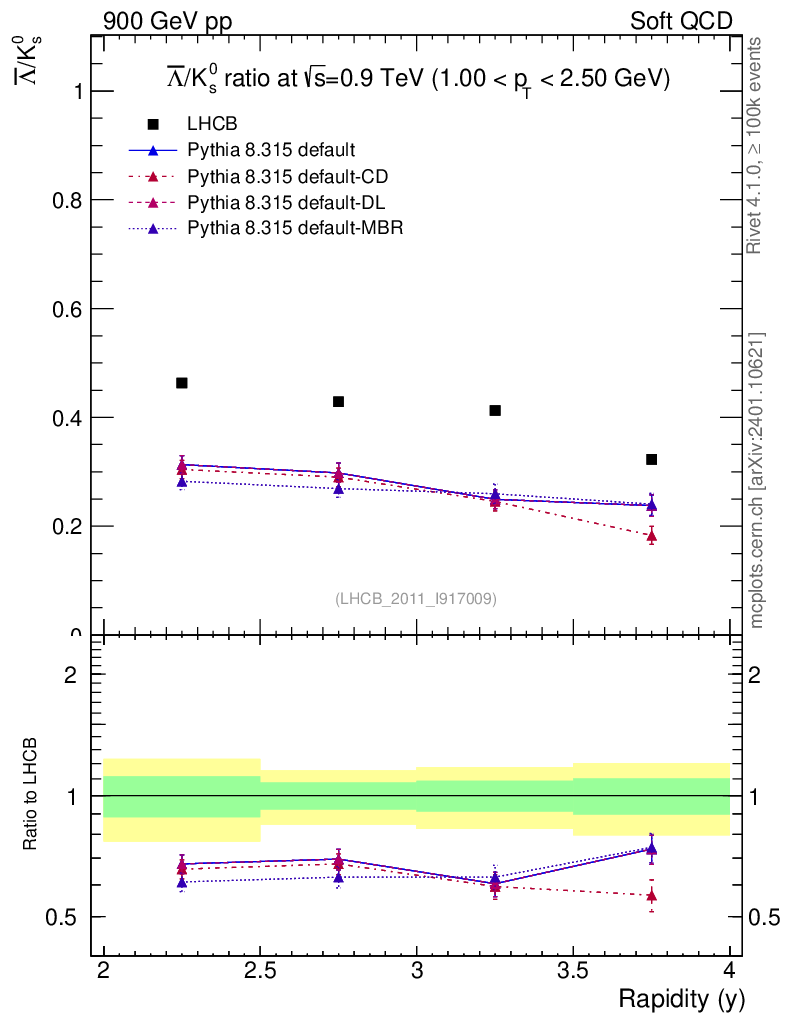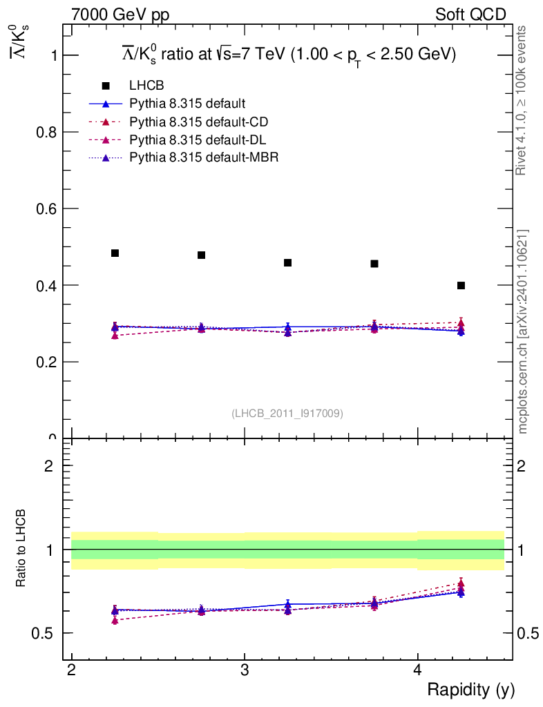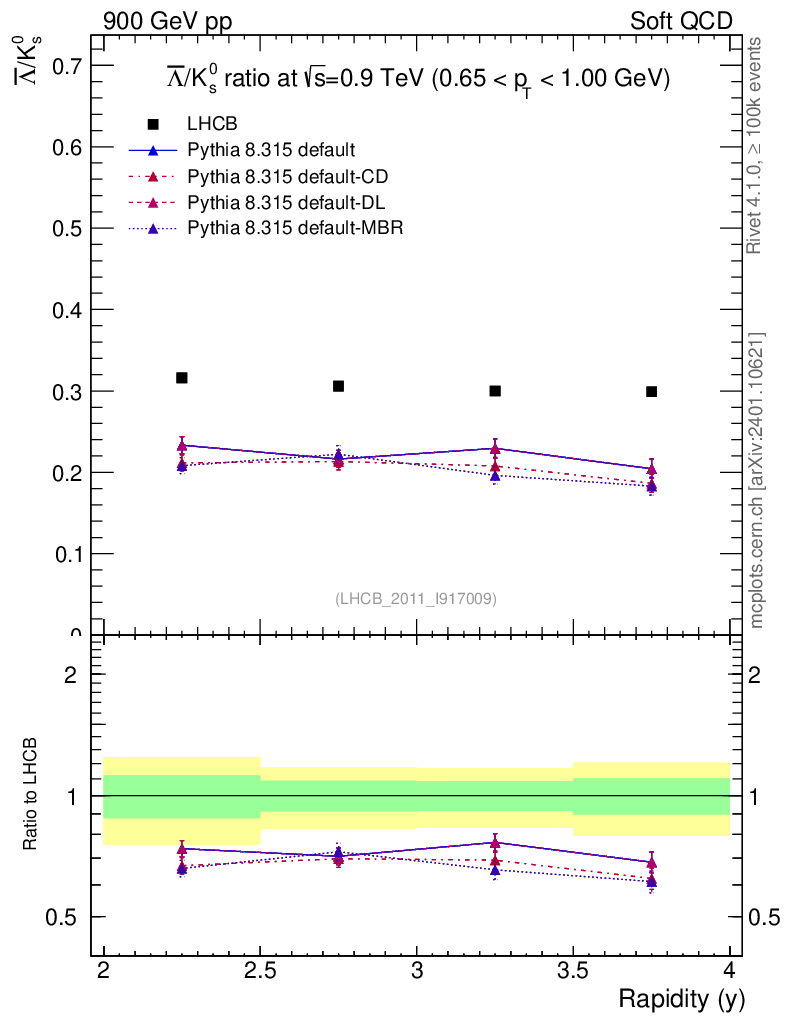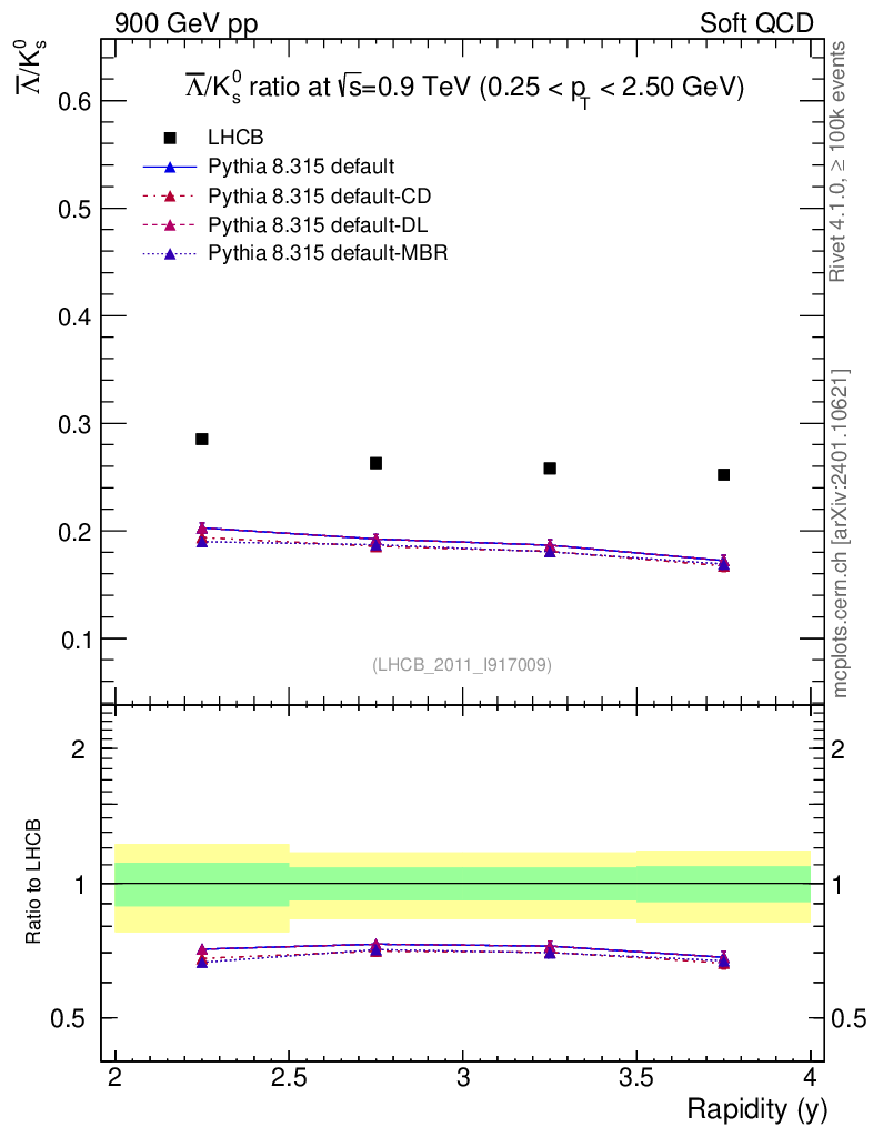 Soft QCD (inelastic) : Identified Particles : Ratios : Λbar/K0S vs |y|