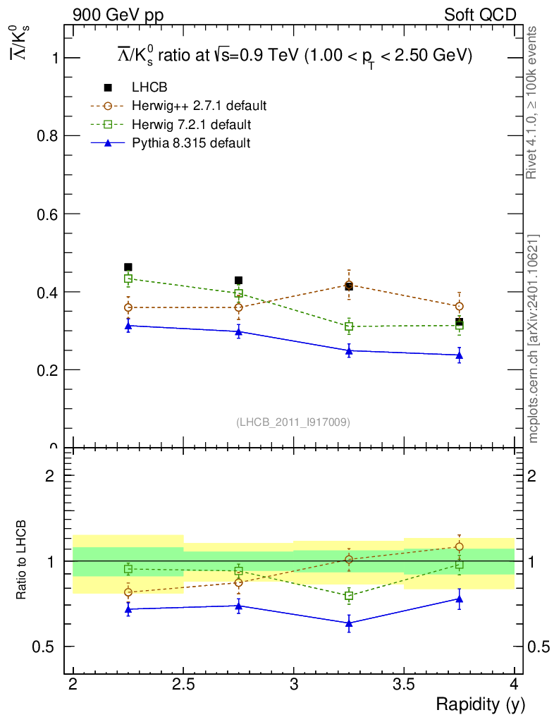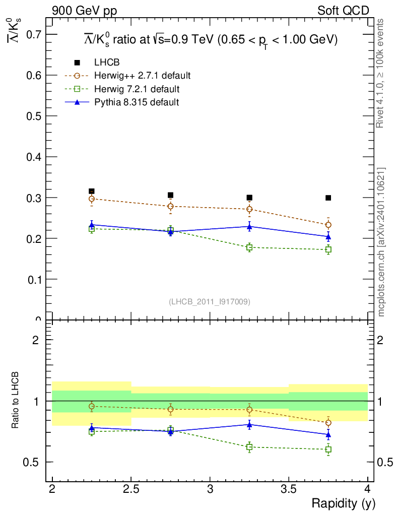 Soft QCD (inelastic) : Identified Particles : Ratios : Λbar/K0S vs |y|