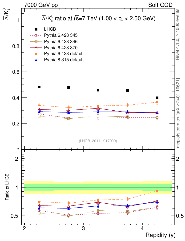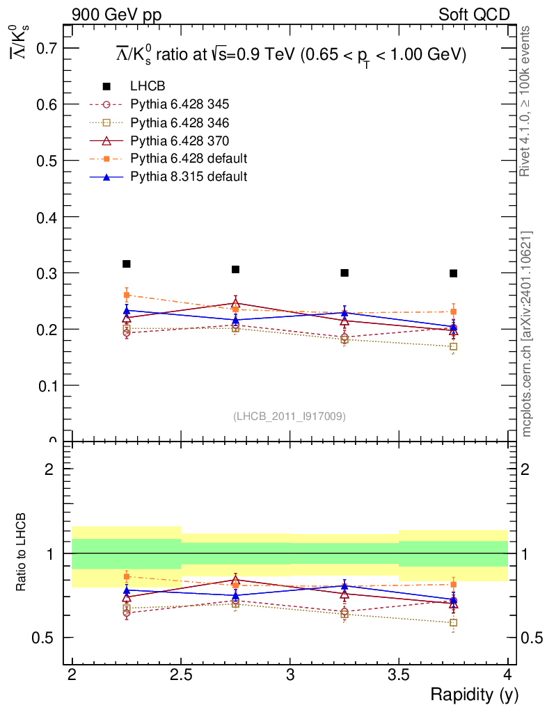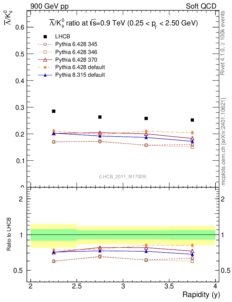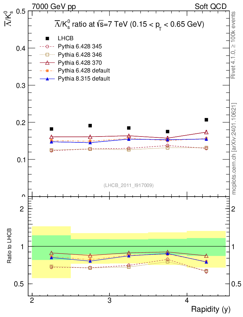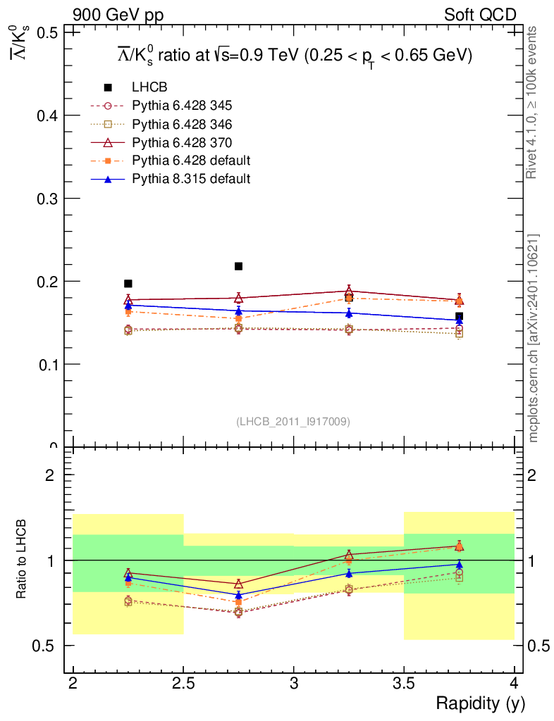 Soft QCD (inelastic) : Identified Particles : Ratios : Λbar/K0S vs |y|