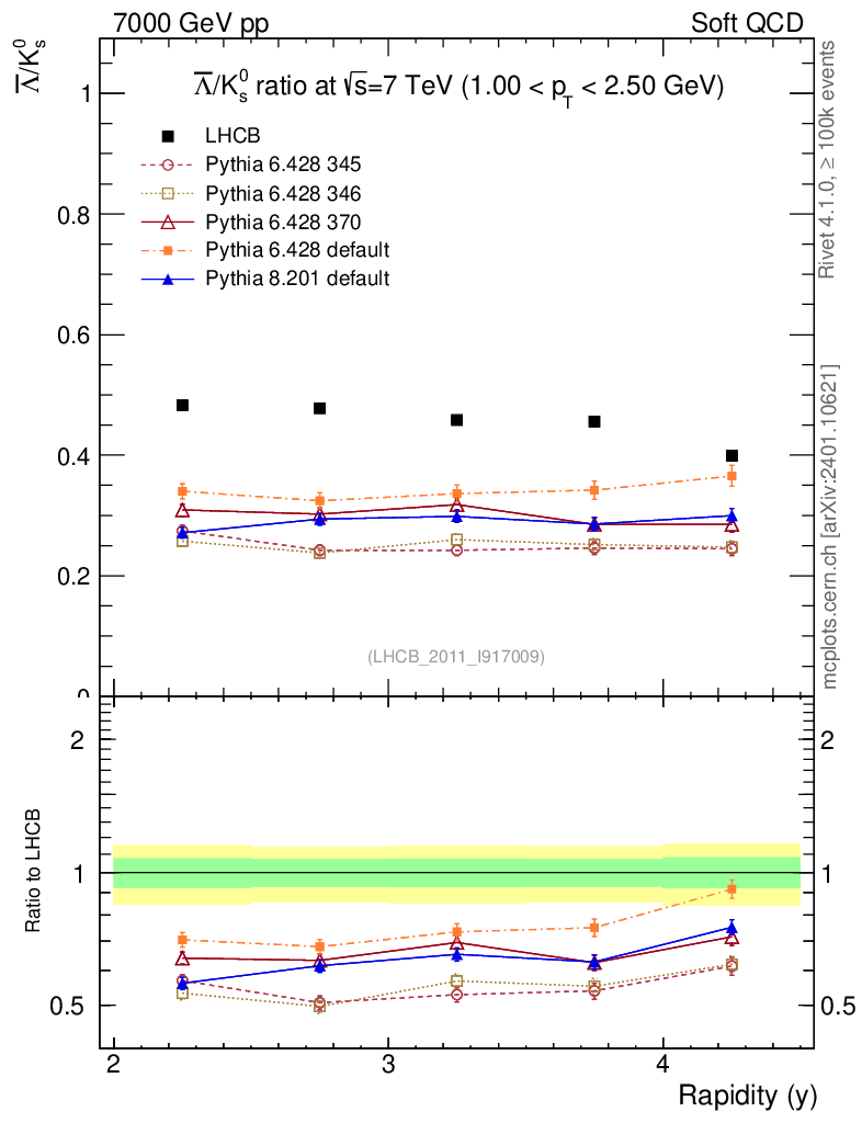 Soft QCD (inelastic) : Identified Particles : Ratios : Λbar/K0S vs |y|