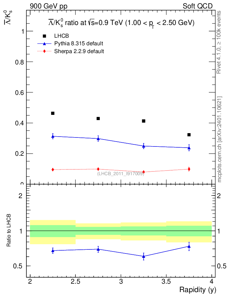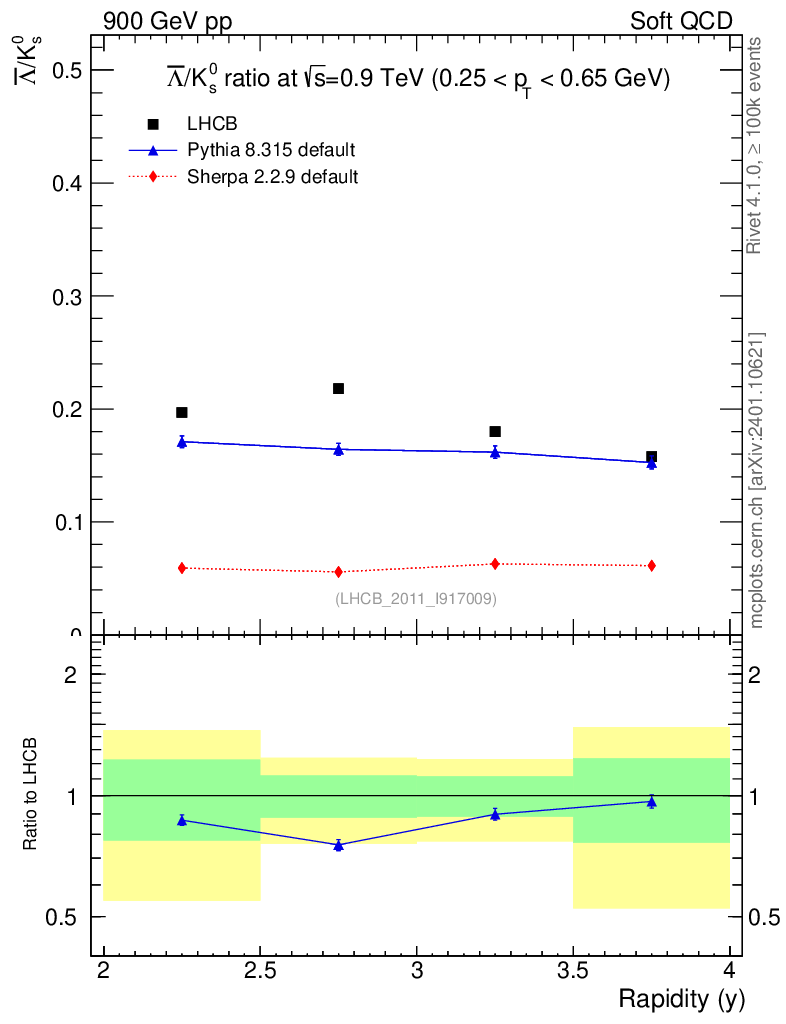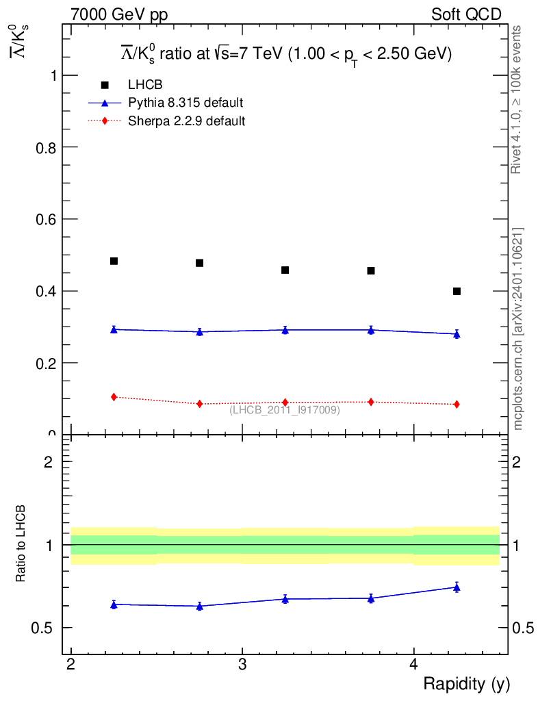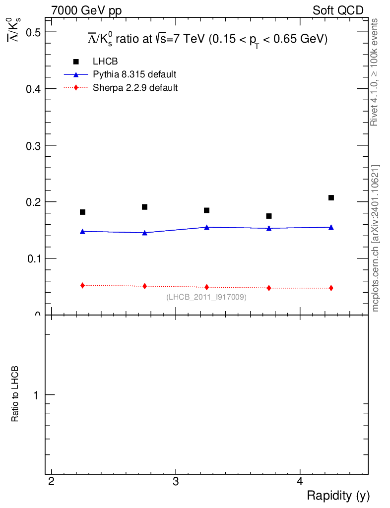 Soft QCD (inelastic) : Identified Particles : Ratios : Λbar/K0S vs |y|