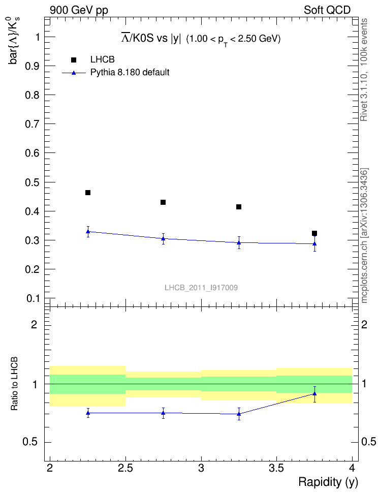 Soft QCD (inelastic) : Identified Particles : Ratios : Λbar/K0S vs |y|