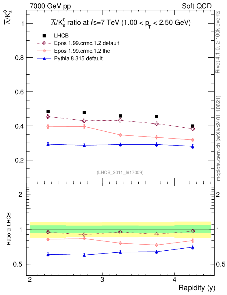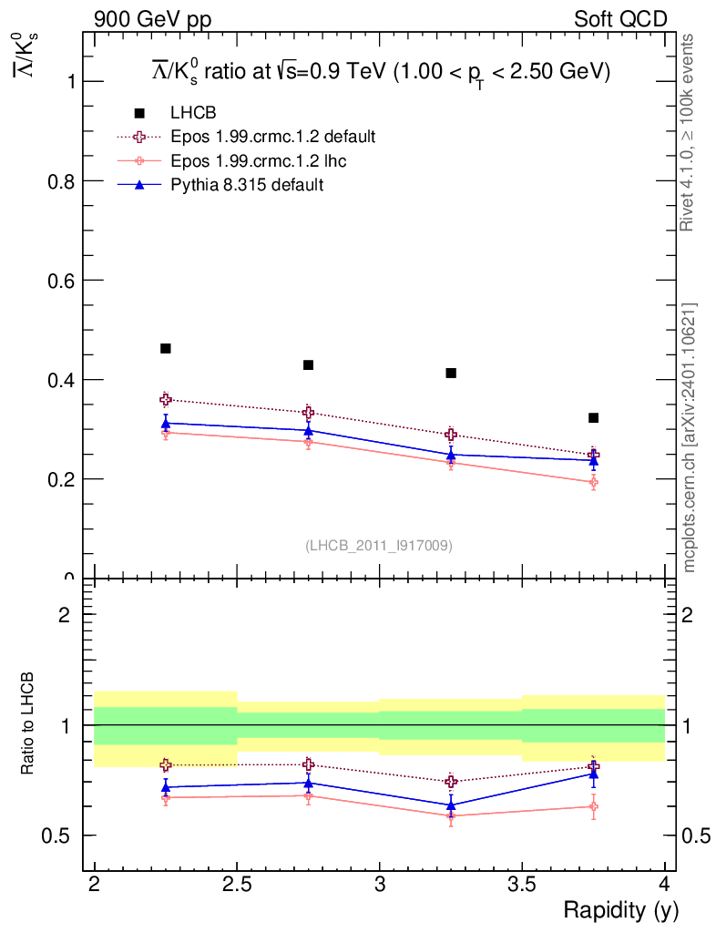 Soft QCD (inelastic) : Identified Particles : Ratios : Λbar/K0S vs |y|