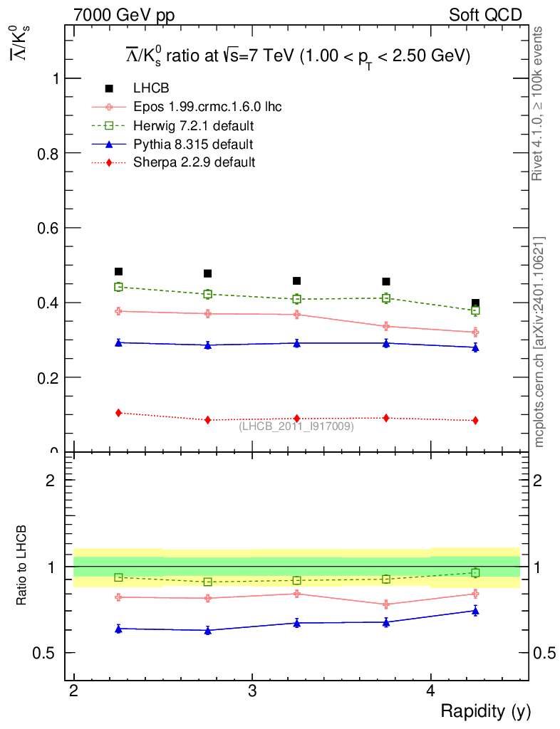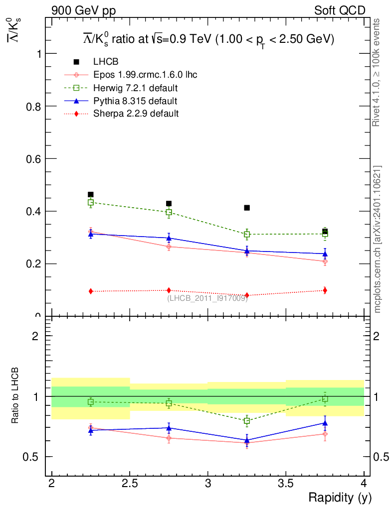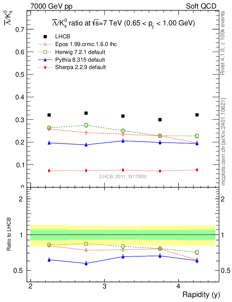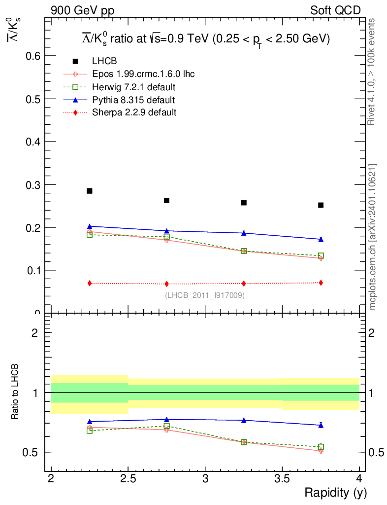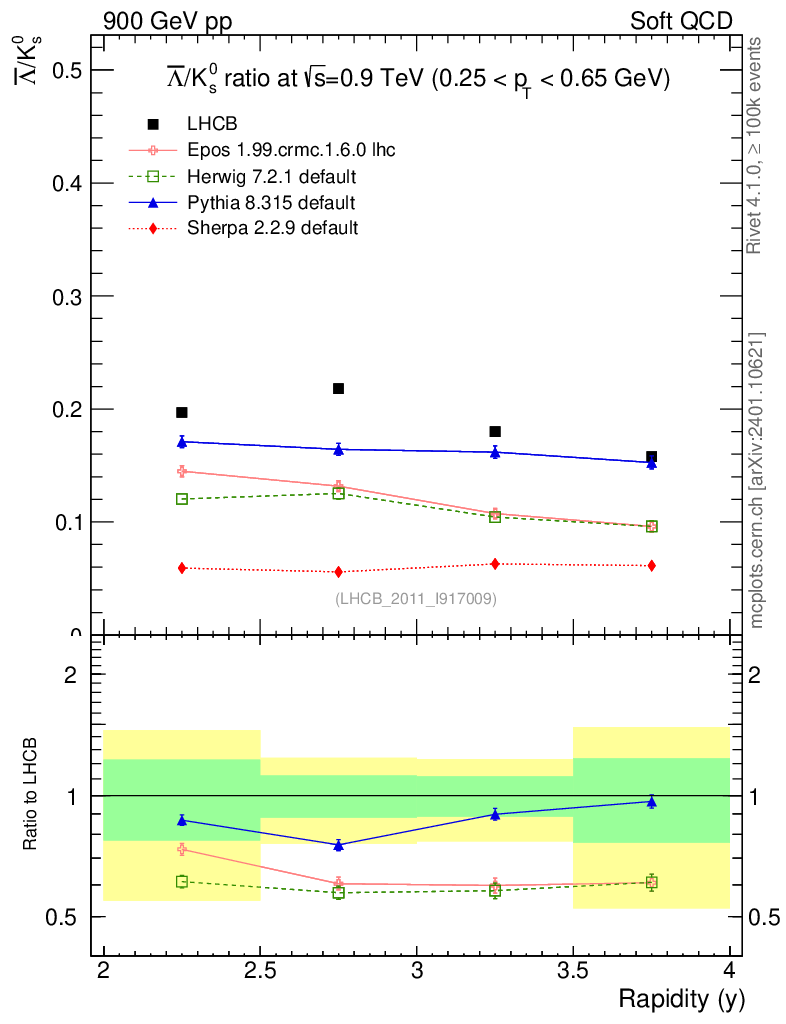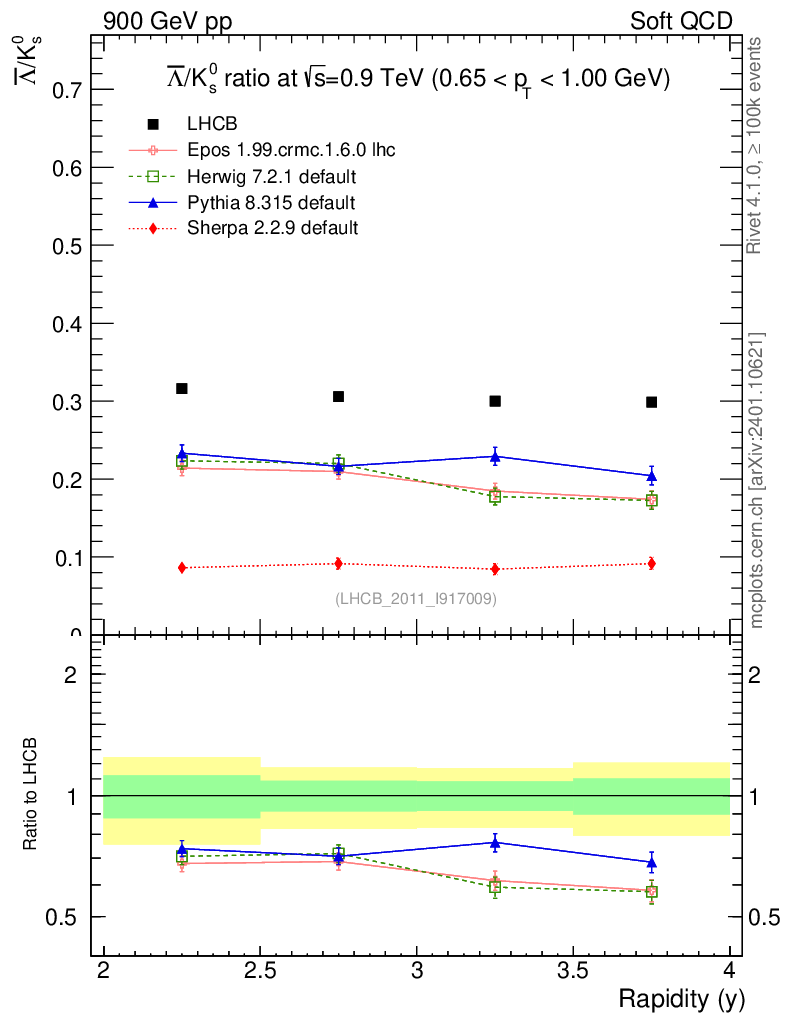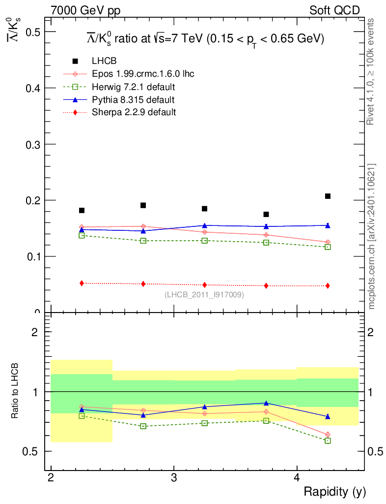 Soft QCD (inelastic) : Identified Particles : Ratios : Λbar/K0S vs |y|