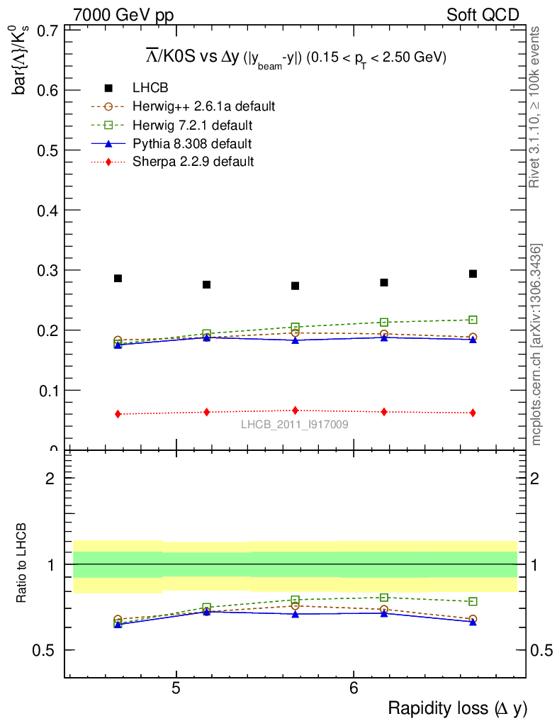 Soft QCD (inelastic) : Identified Particles : Ratios : Λbar/K0S vs |Δy|