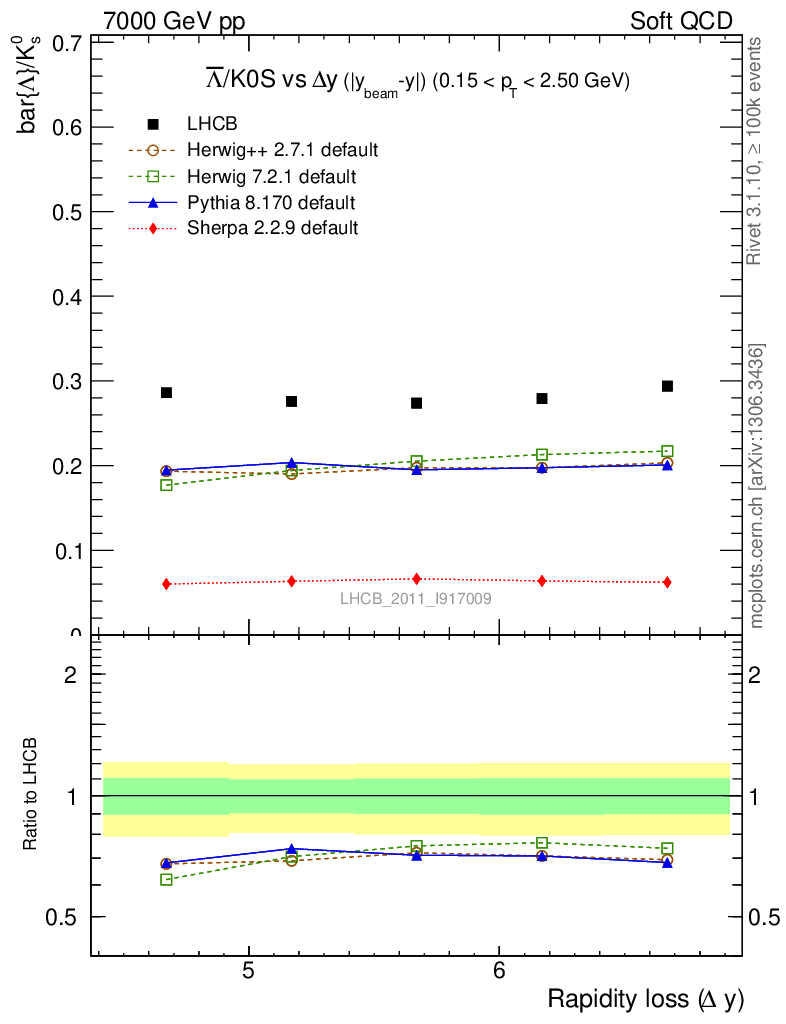 Soft QCD (inelastic) : Identified Particles : Ratios : Λbar/K0S vs |Δy|