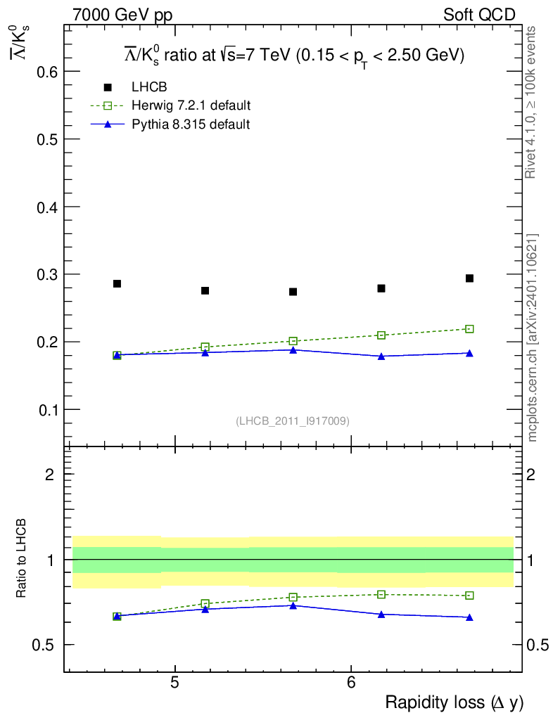 Soft QCD (inelastic) : Identified Particles : Ratios : Λbar/K0S vs |Δy|