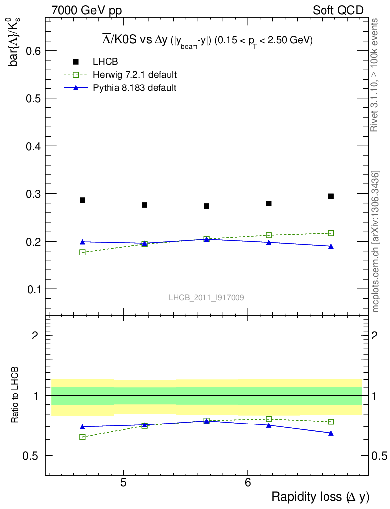 Soft QCD (inelastic) : Identified Particles : Ratios : Λbar/K0S vs |Δy|