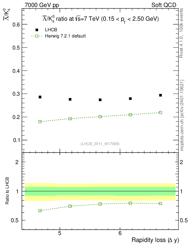 Soft QCD (inelastic) : Identified Particles : Ratios : Λbar/K0S vs |Δy|