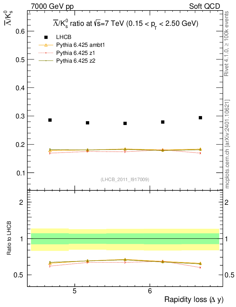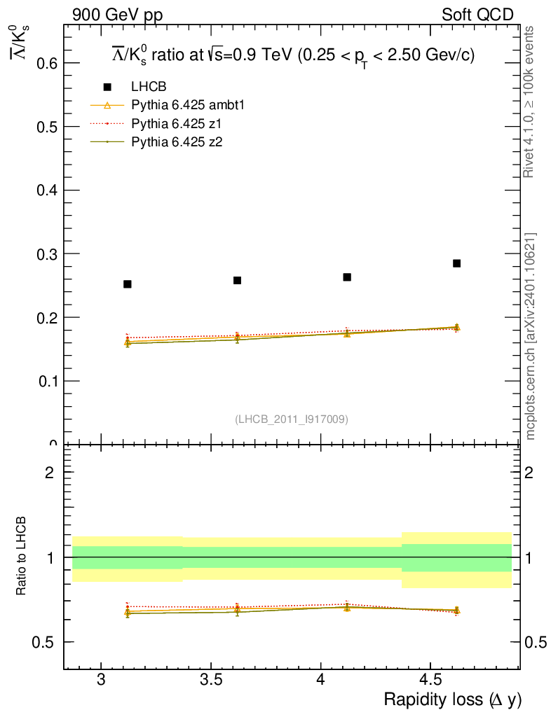 Soft QCD (inelastic) : Identified Particles : Ratios : Λbar/K0S vs |Δy|