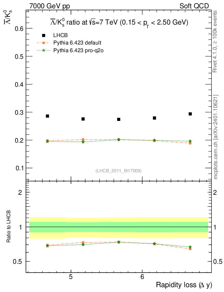 Soft QCD (inelastic) : Identified Particles : Ratios : Λbar/K0S vs |Δy|