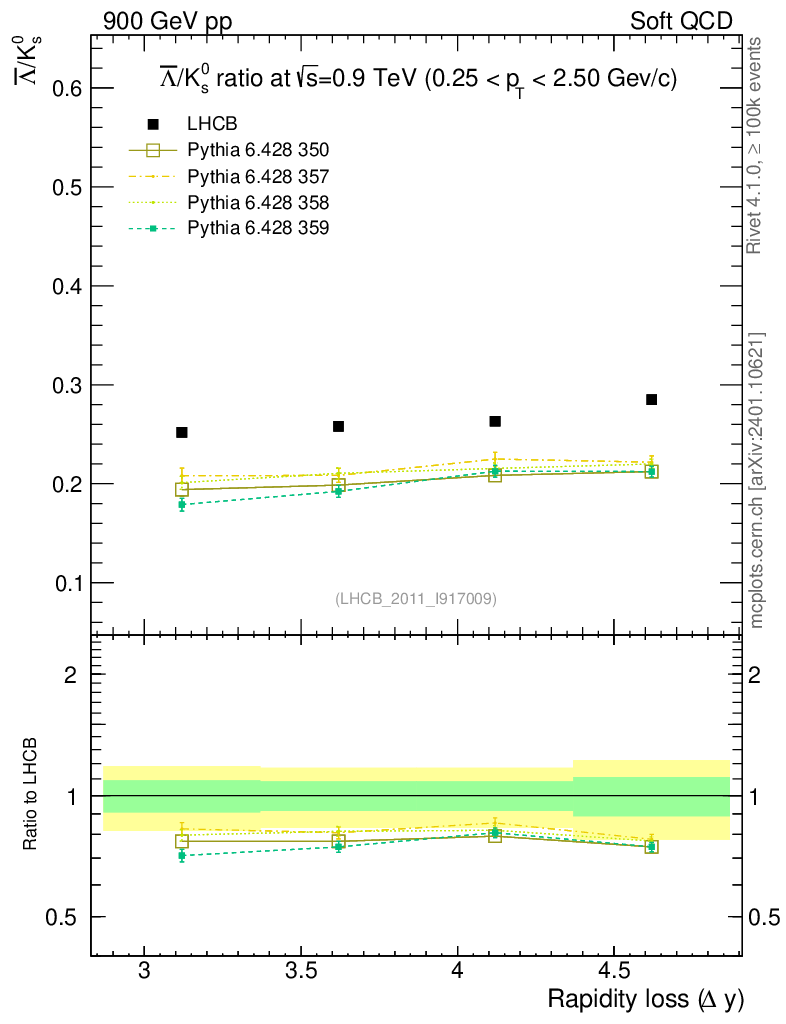 Soft QCD (inelastic) : Identified Particles : Ratios : Λbar/K0S vs |Δy|