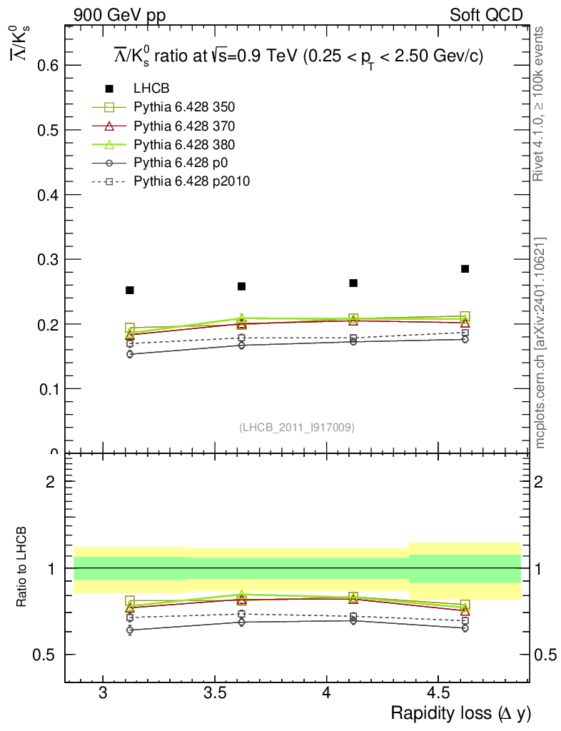 Soft QCD (inelastic) : Identified Particles : Ratios : Λbar/K0S vs |Δy|