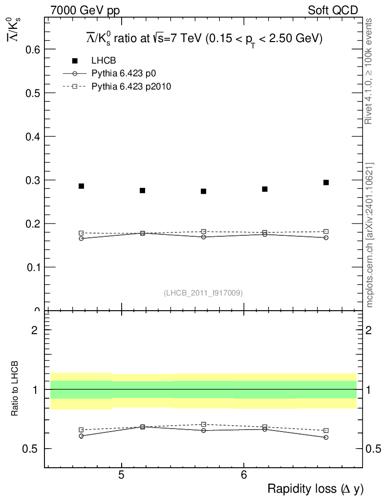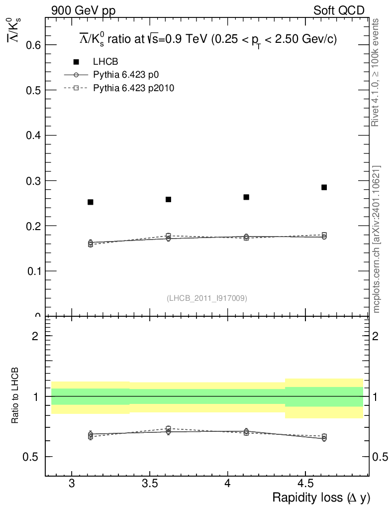 Soft QCD (inelastic) : Identified Particles : Ratios : Λbar/K0S vs |Δy|