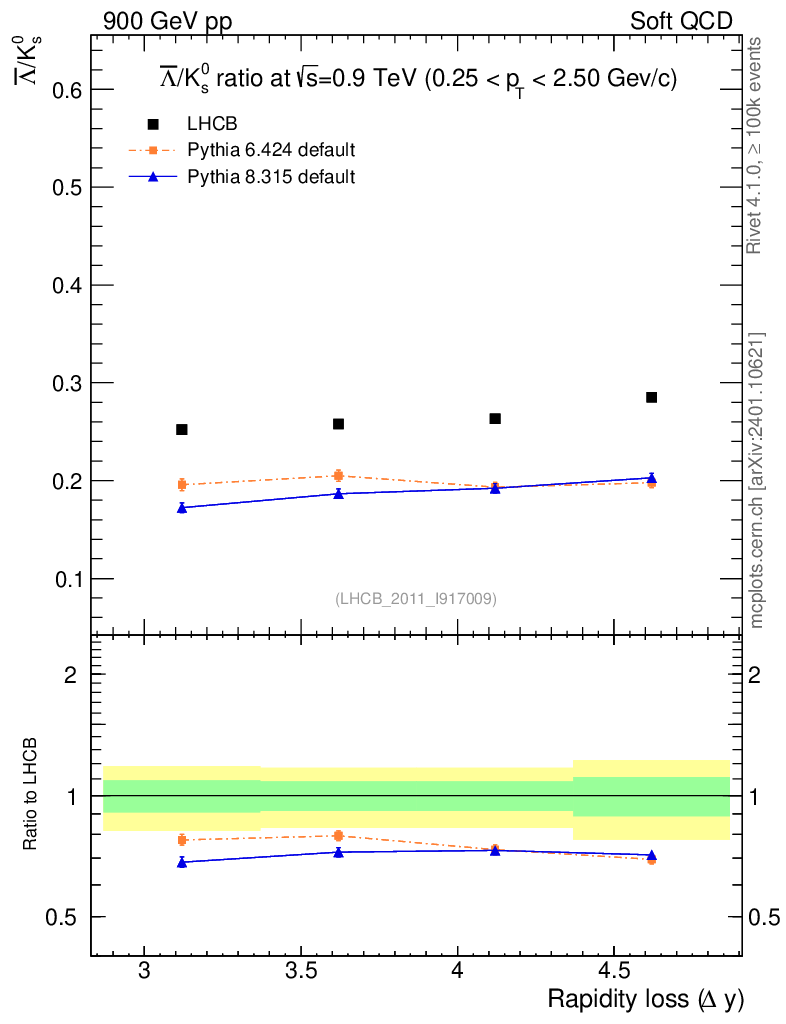 Soft QCD (inelastic) : Identified Particles : Ratios : Λbar/K0S vs |Δy|