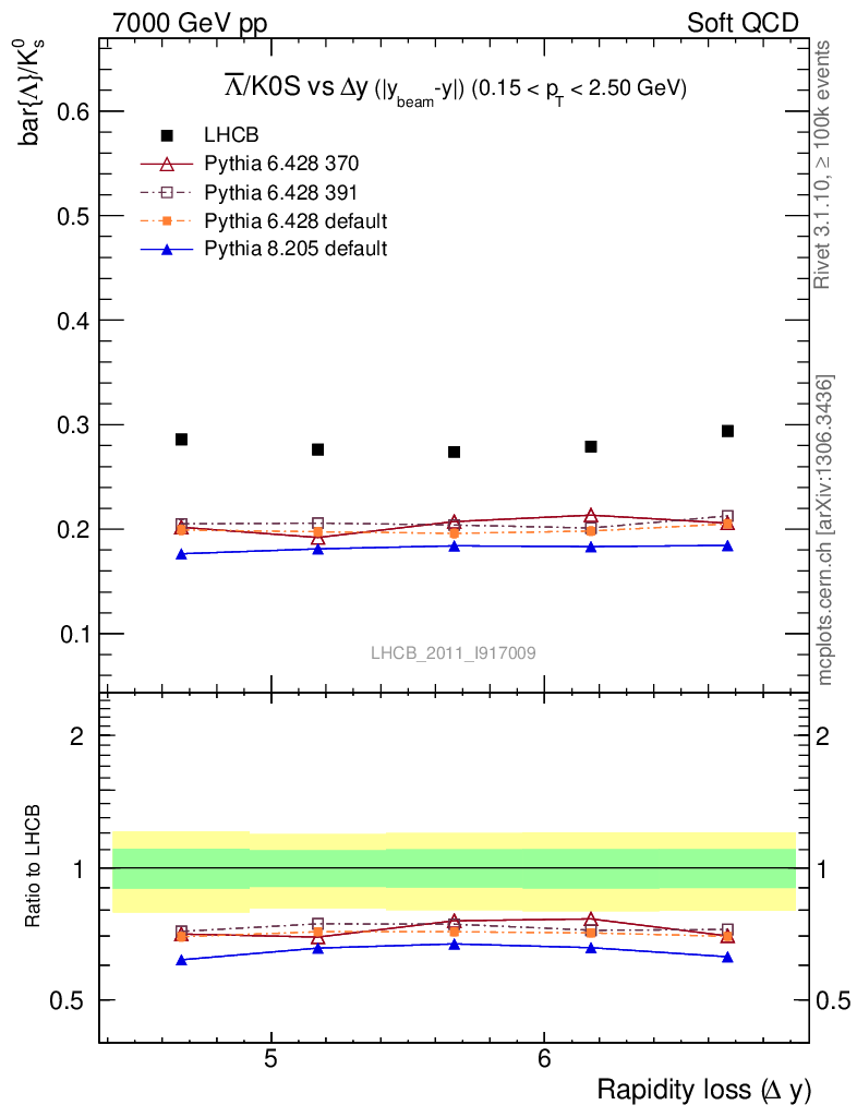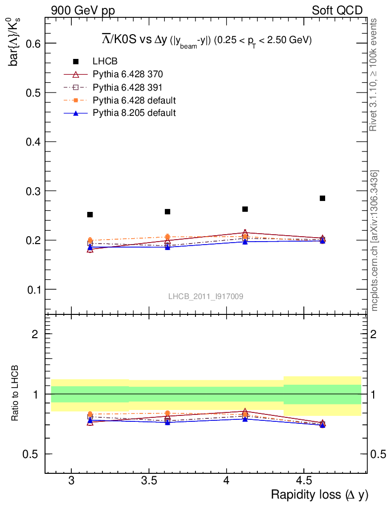 Soft QCD (inelastic) : Identified Particles : Ratios : Λbar/K0S vs |Δy|