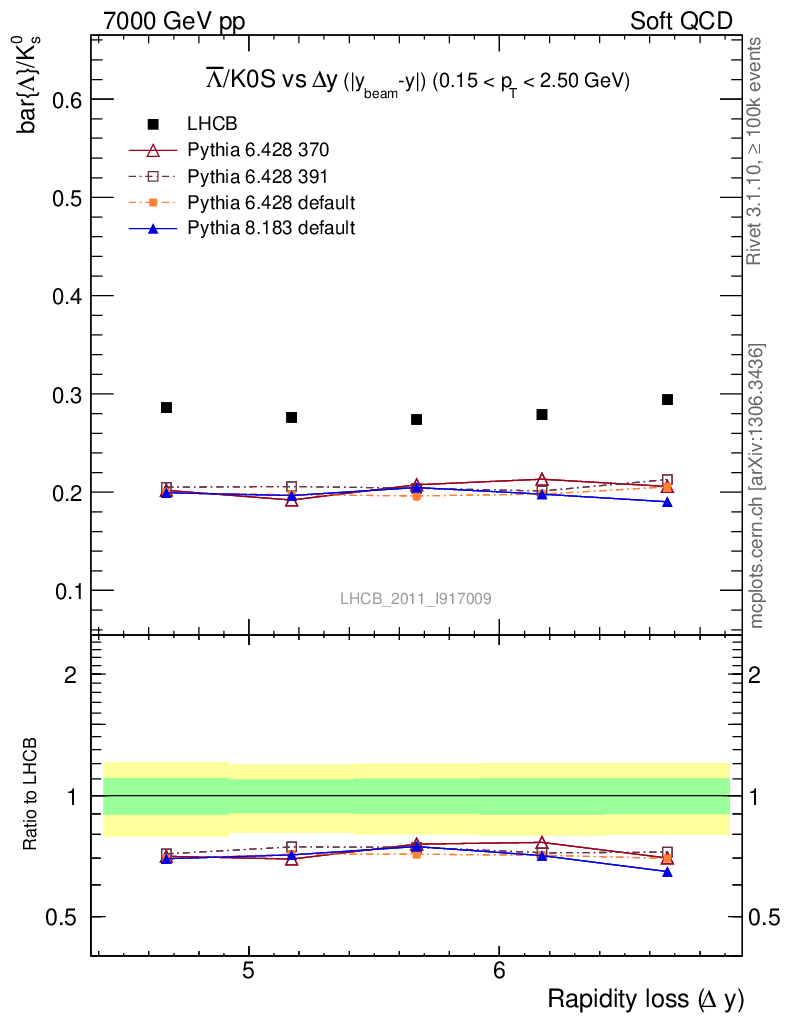 Soft QCD (inelastic) : Identified Particles : Ratios : Λbar/K0S vs |Δy|