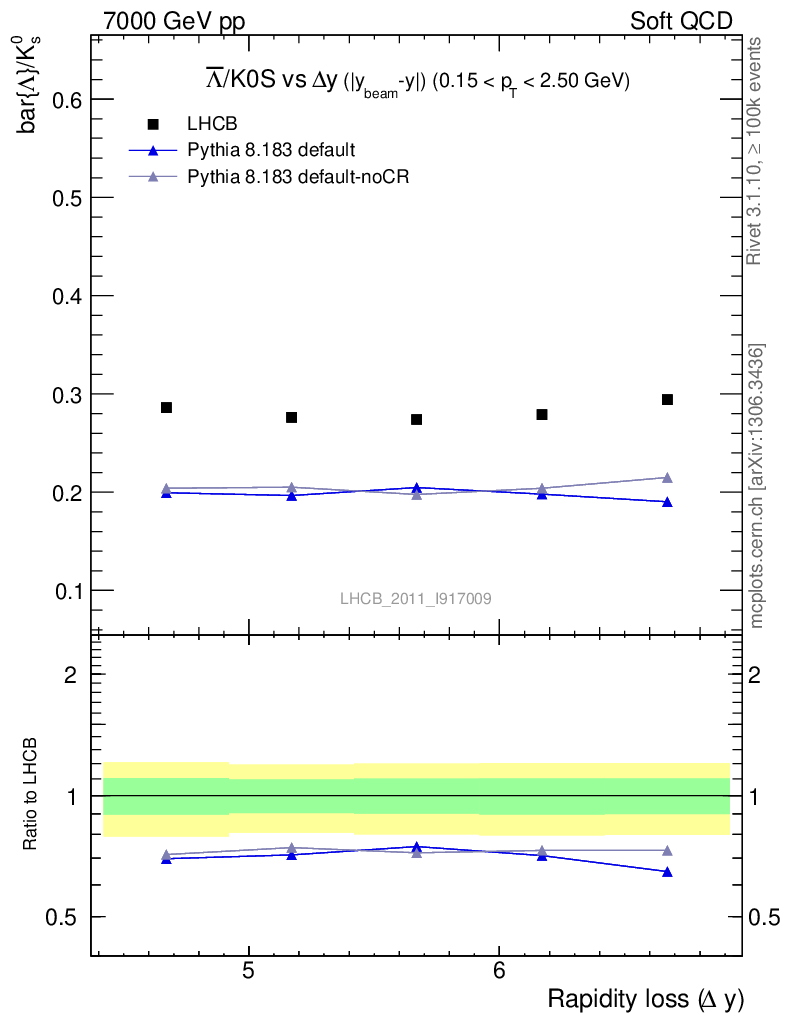 Soft QCD (inelastic) : Identified Particles : Ratios : Λbar/K0S vs |Δy|