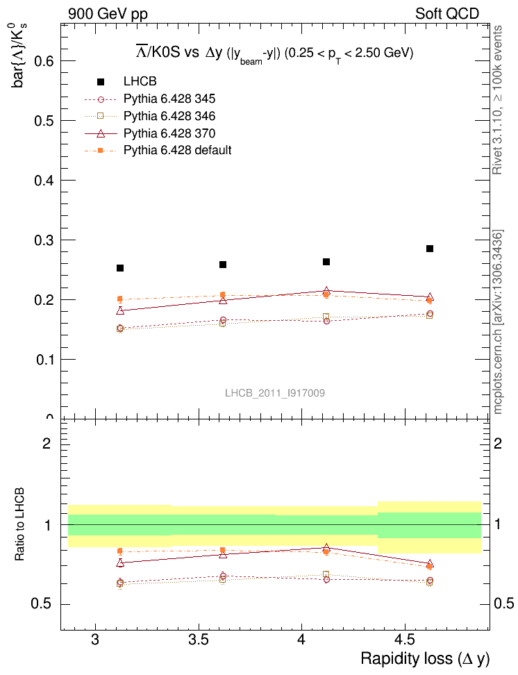 Soft QCD (inelastic) : Identified Particles : Ratios : Λbar/K0S vs |Δy|
