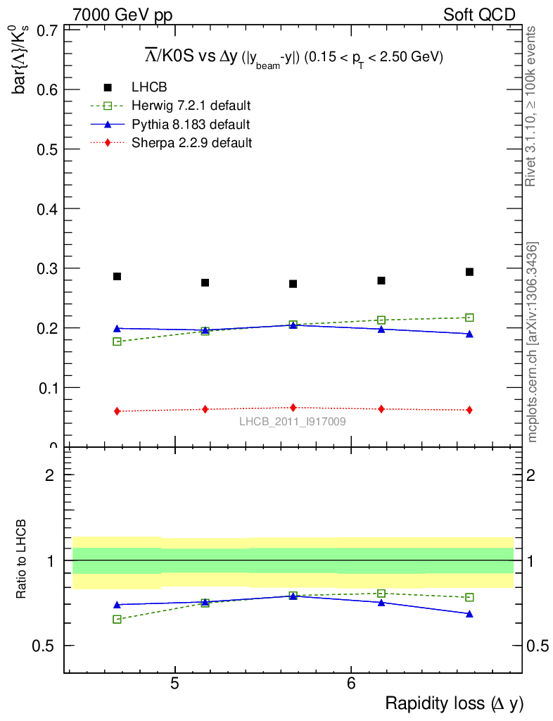 Soft QCD (inelastic) : Identified Particles : Ratios : Λbar/K0S vs |Δy|