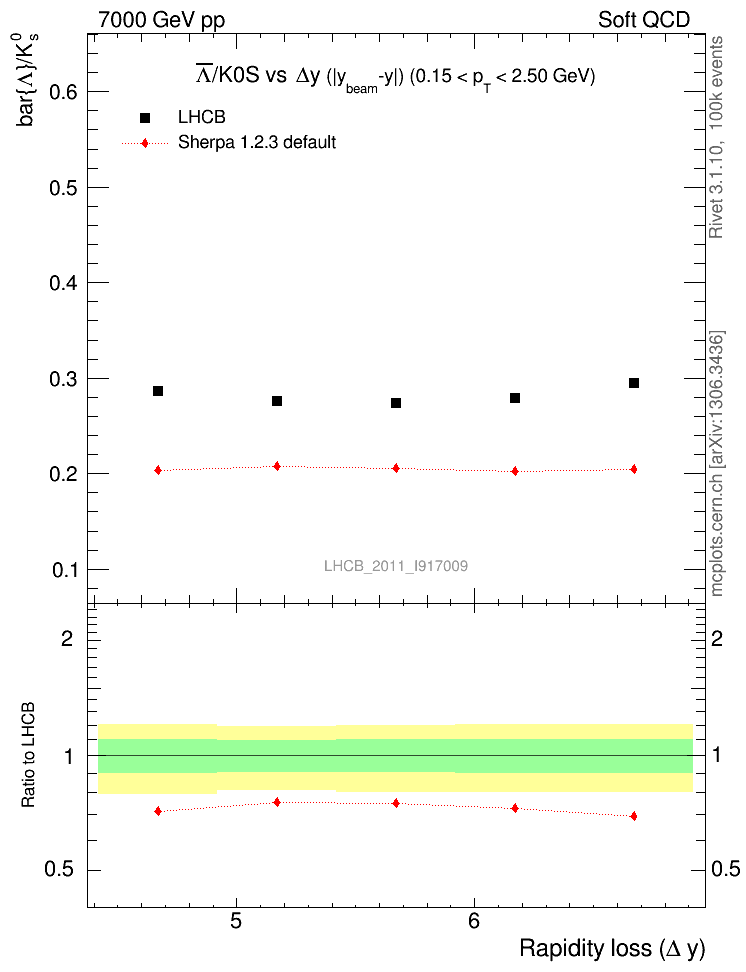 Soft QCD (inelastic) : Identified Particles : Ratios : Λbar/K0S vs |Δy|