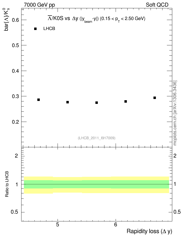 Soft QCD (inelastic) : Identified Particles : Ratios : Λbar/K0S vs |Δy|
