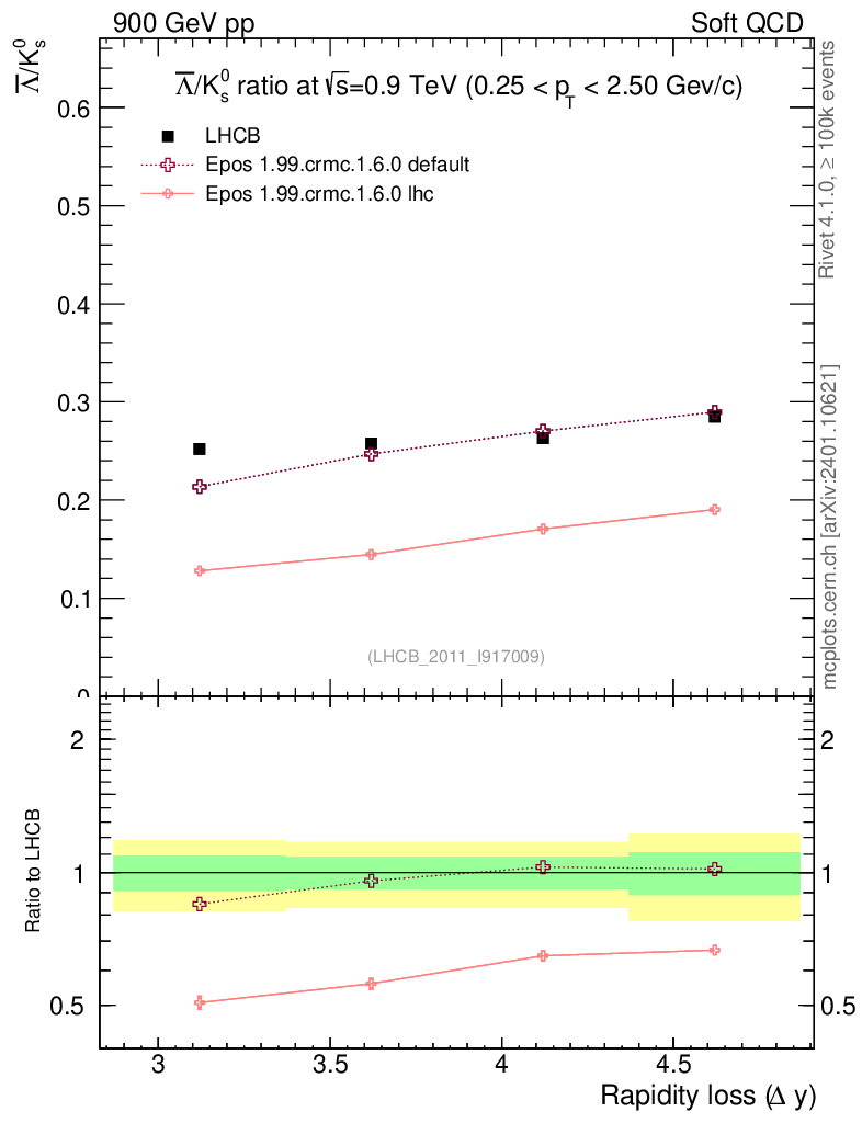 Soft QCD (inelastic) : Identified Particles : Ratios : Λbar/K0S vs |Δy|